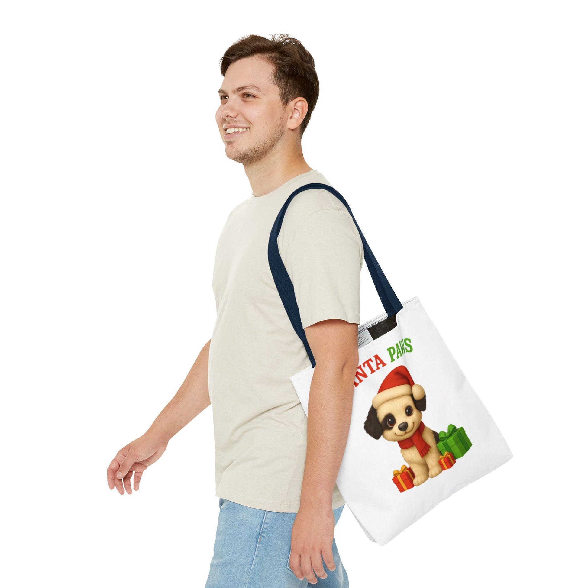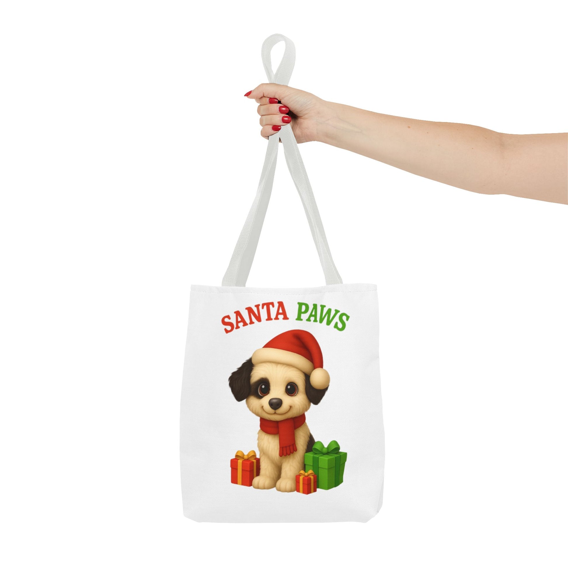 Christmas Dog Tote Bag, Pet Lover Gift, Santa Paws Eco-friendly Bag, Holiday Shopping Tote, Cute Puppy Design, Dog Owner Accessory