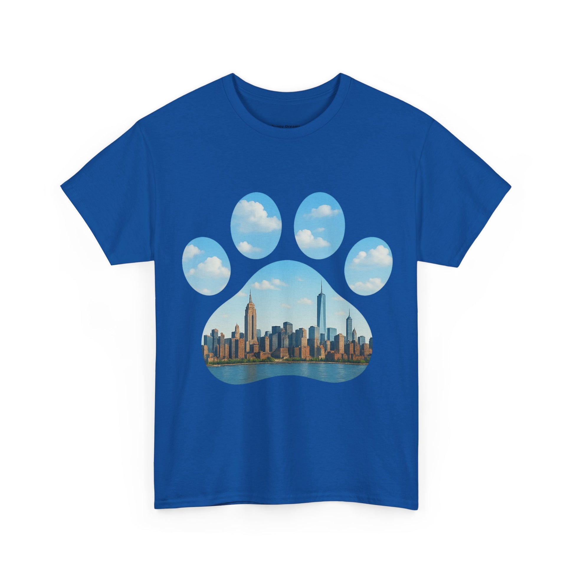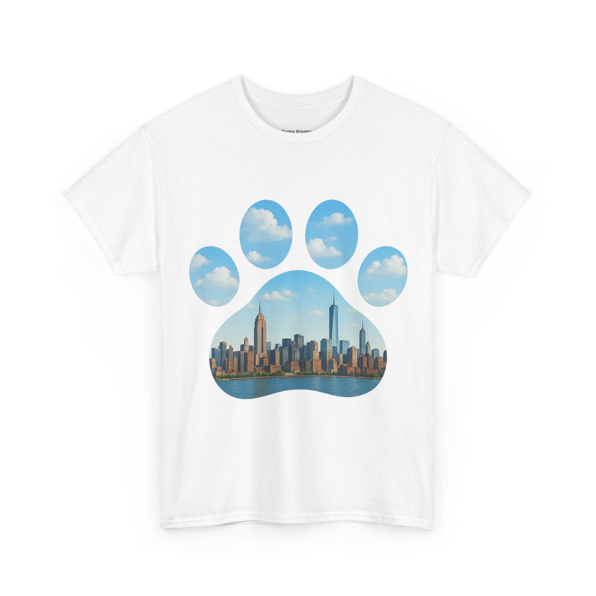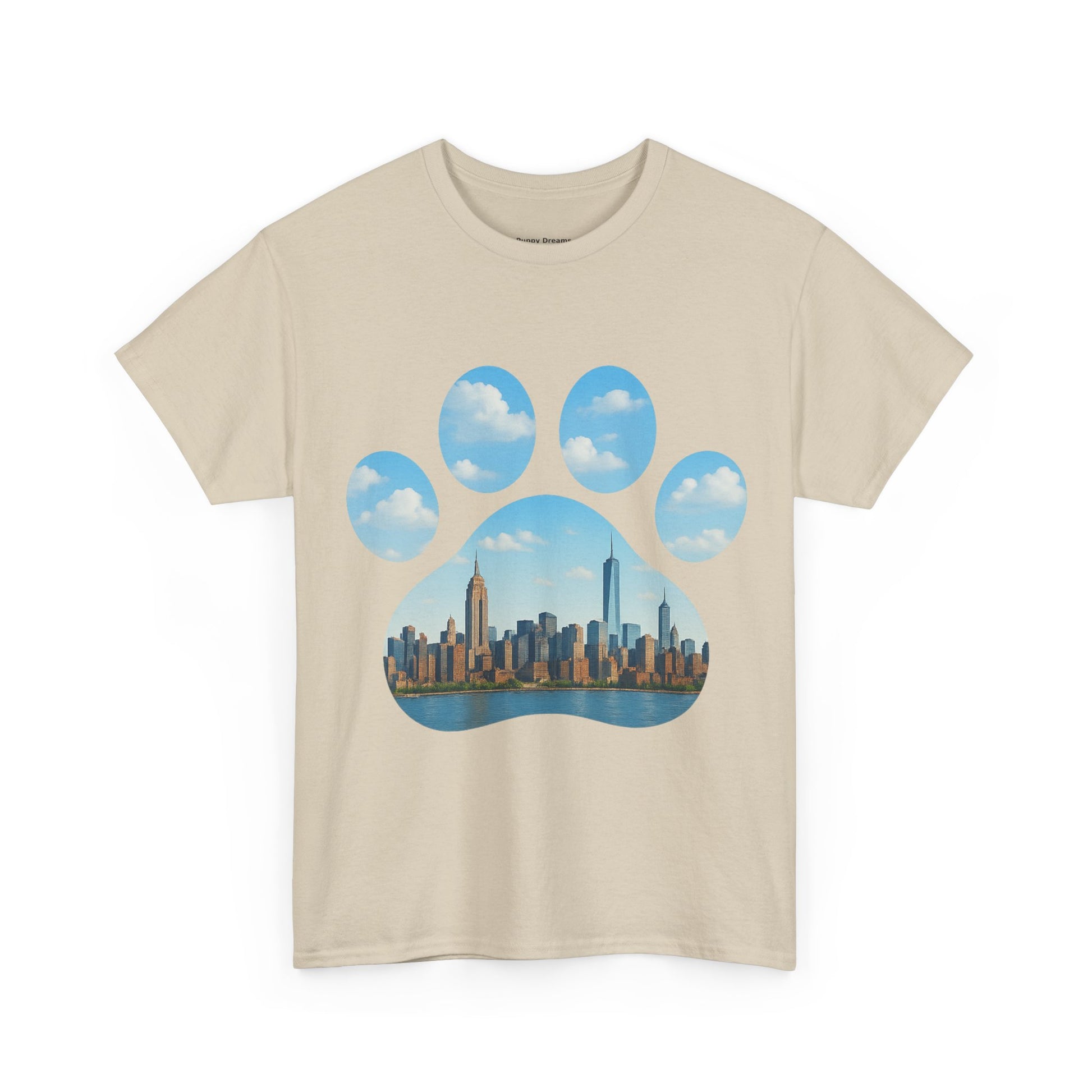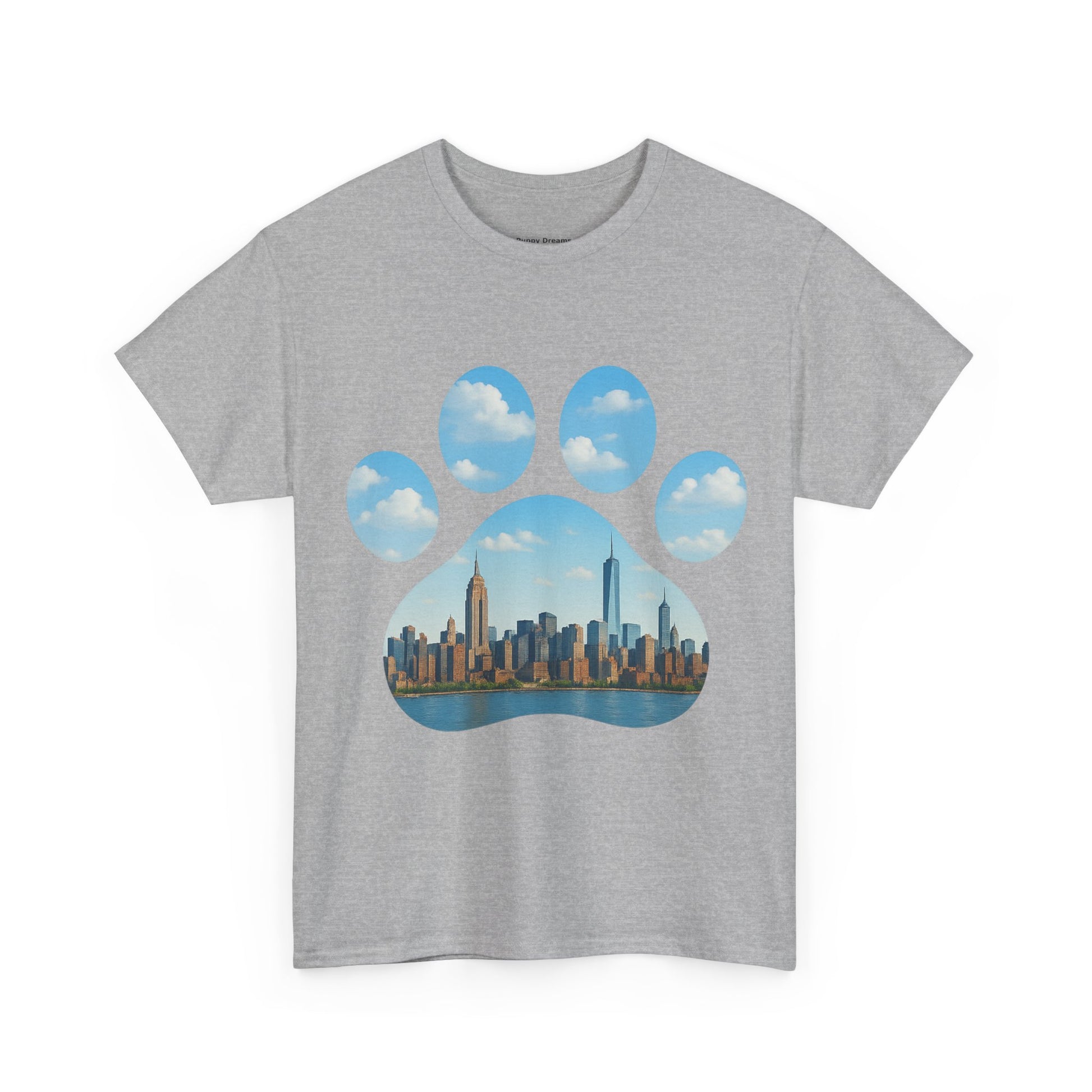 Cityscape Paw Print Unisex Heavy Cotton Tee, Dog Lover Gift, Casual Wear, Pet-Themed Apparel, Animal Lover Shirt, Nature-Inspired Tee