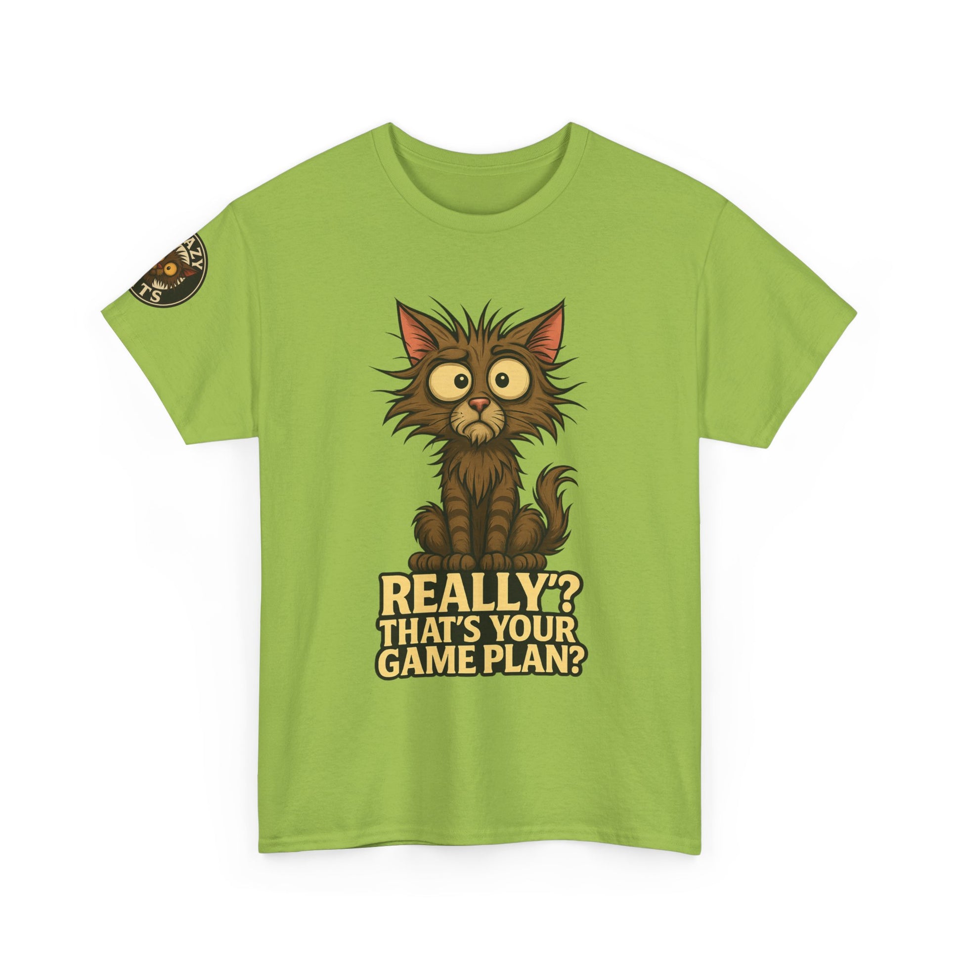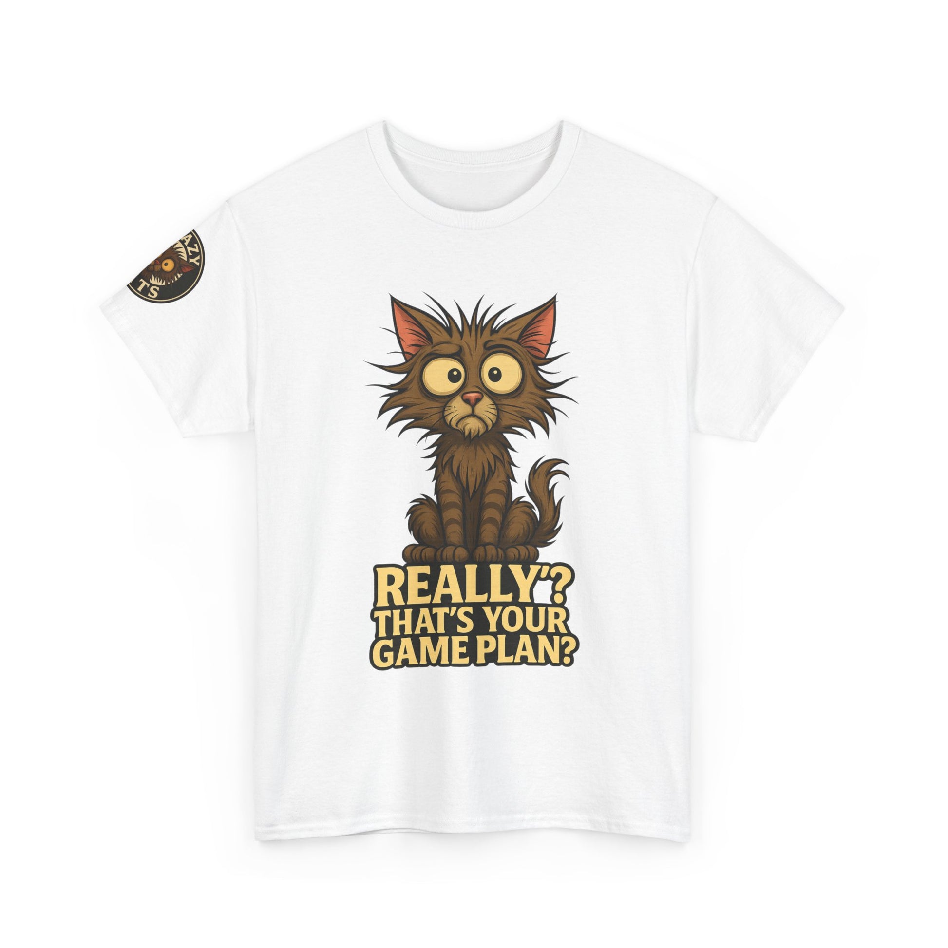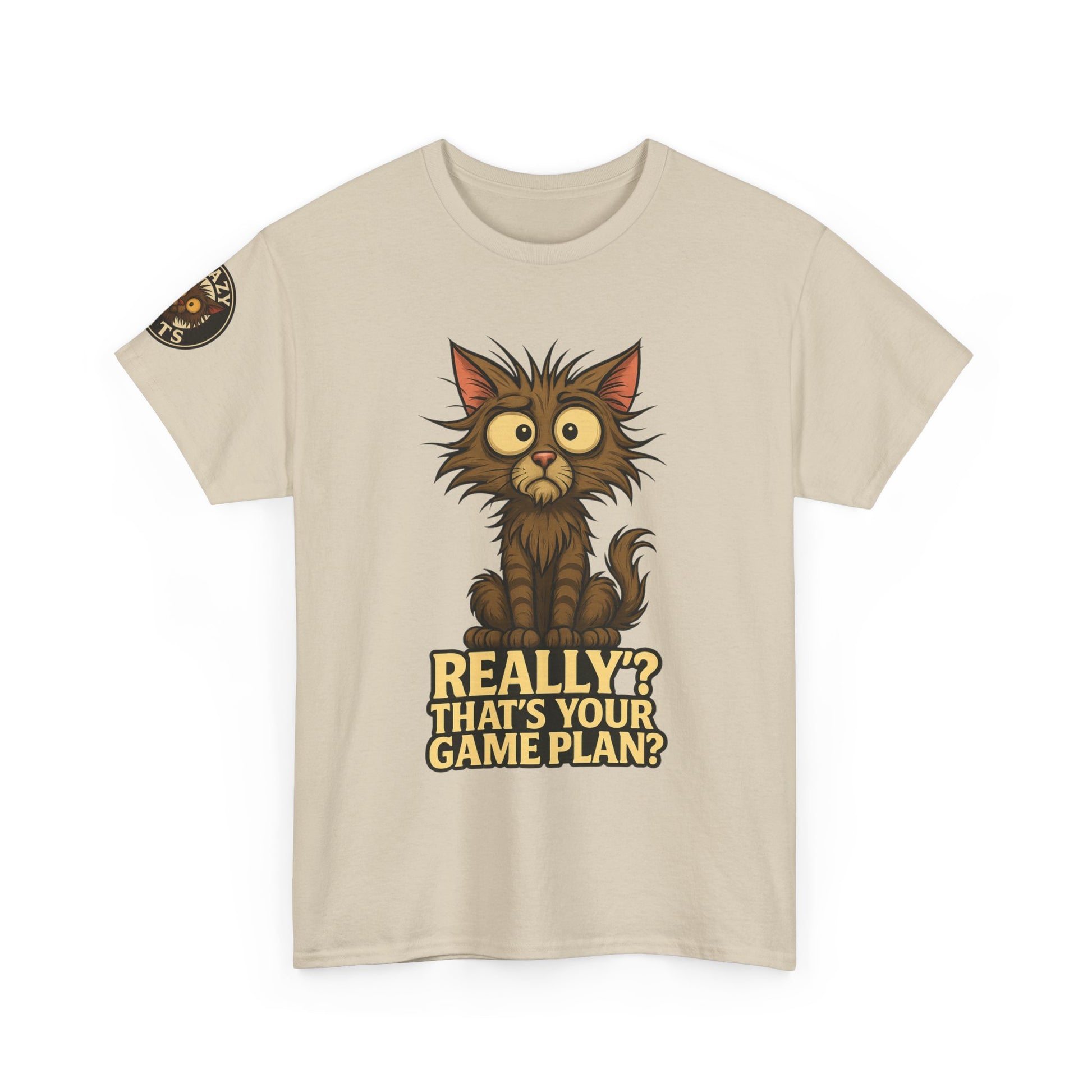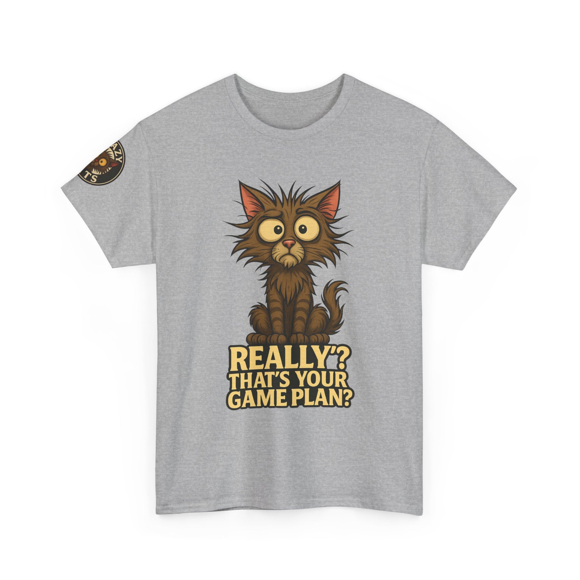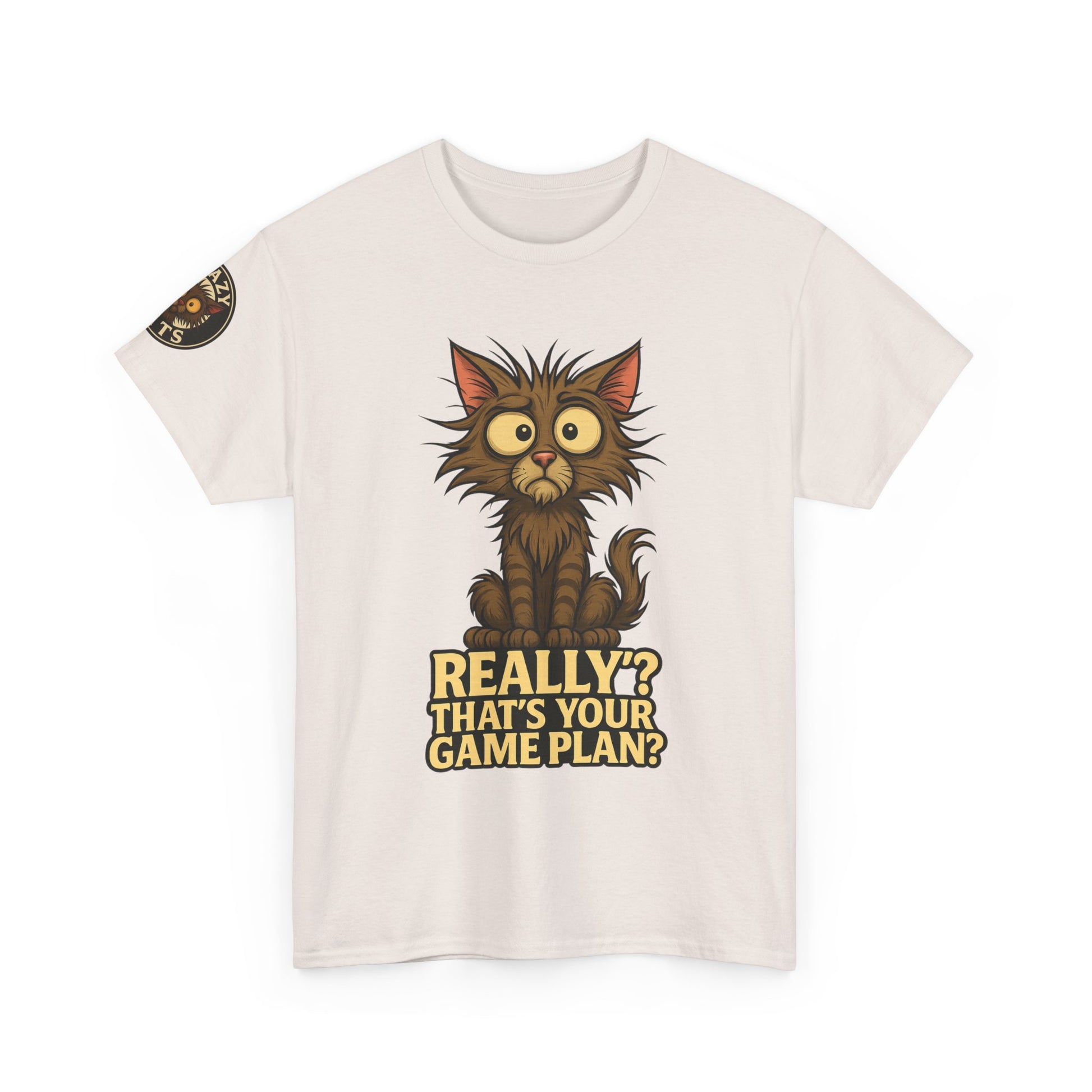 Crazy Cats Graphic Tee — "Really? That’s Your Game Plan?" Cute Cat Shirt for Cat Lovers