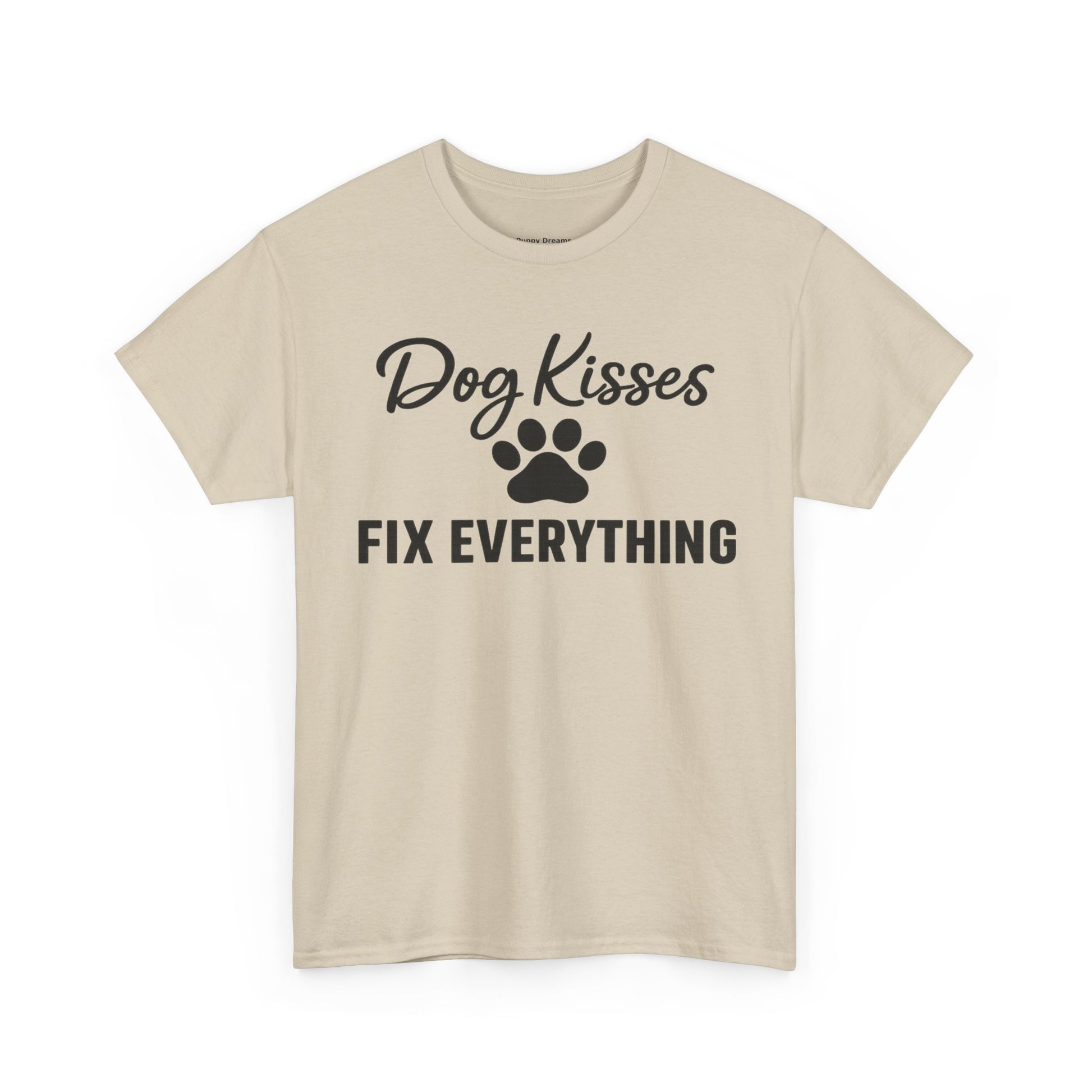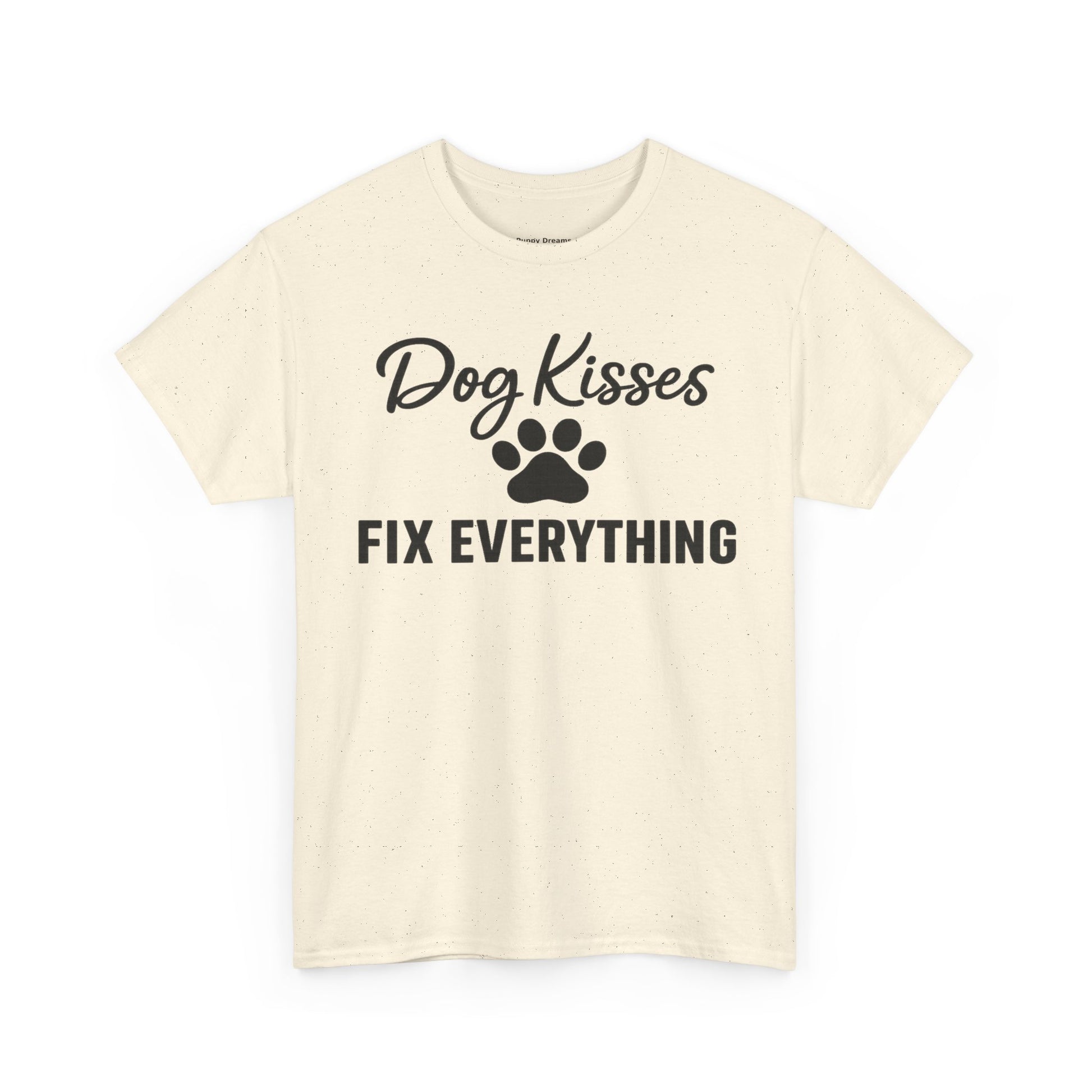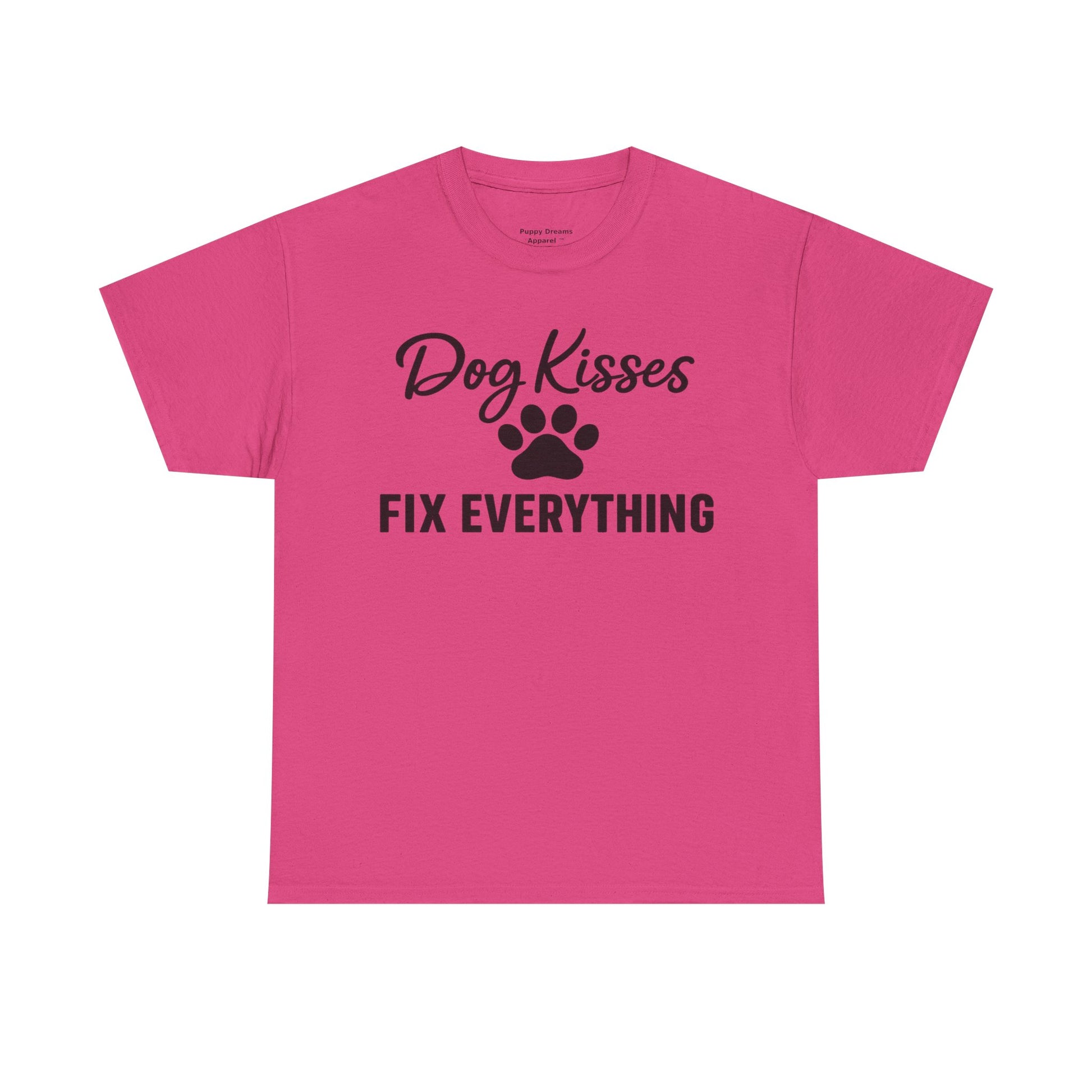 Dog Kisses Fix Everything Unisex Heavy Cotton Tee, Pet Lover Shirt, Gift for Dog Owners, Animal Rescue Supporter Tee, Casual Everyday Wear