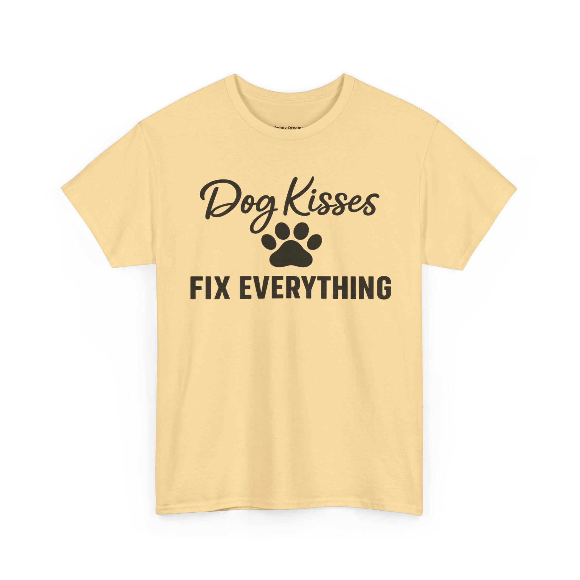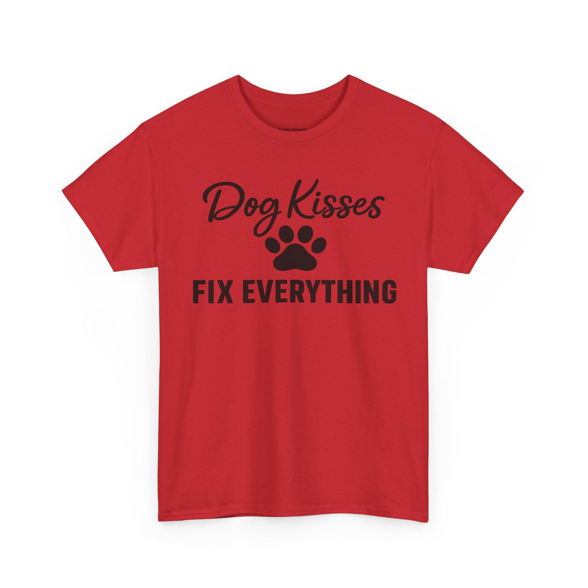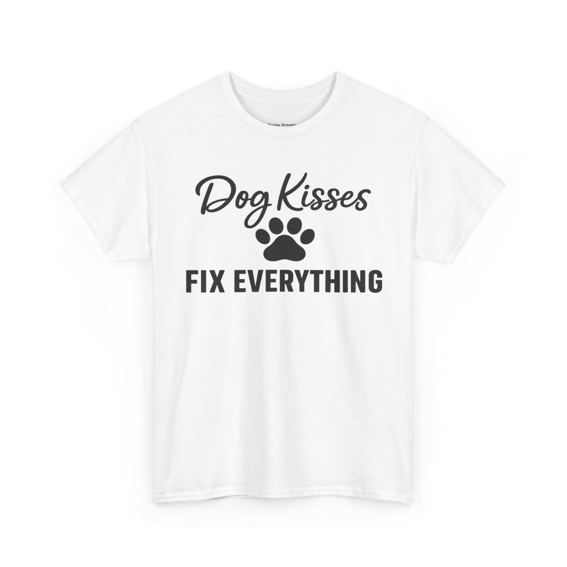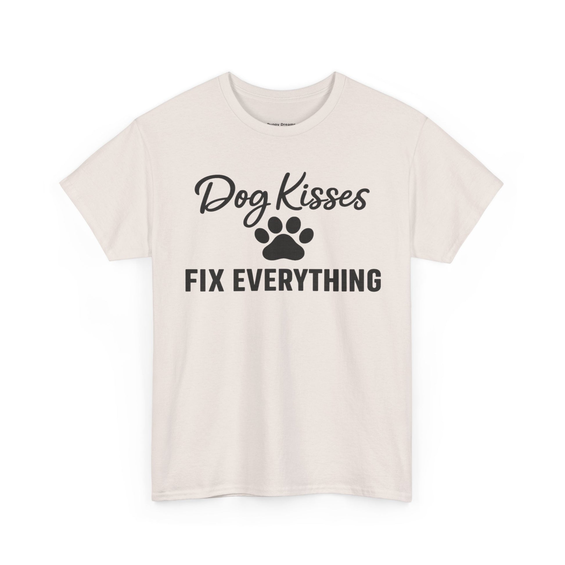 Dog Kisses Fix Everything Unisex Heavy Cotton Tee, Pet Lover Shirt, Gift for Dog Owners, Animal Rescue Supporter Tee, Casual Everyday Wear