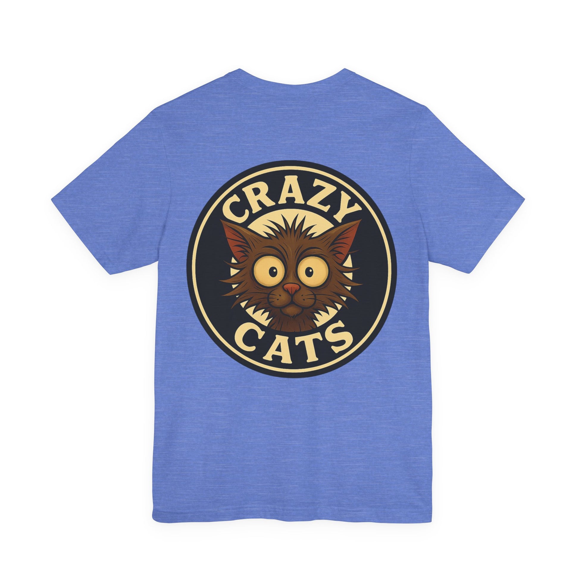 A lightweight, soft cotton tee for cat lovers who celebrate the dramatic and delightfully eccentric side of their pets. The front shows a wide-eyed, fluffed-up feline with “DRAMA QUEEN” beneath — playful and slightly theatrical. The back features a vintage-style round badge reading “CRAZY CATS” with the same startled cat peeking through, giving the shirt a cheeky two-sided personality. Wear it to share a wink with fellow cat people, to spark conversations at casual meetups, or to add a humorous layer to everyday outfits. The breathable Airlume cotton and retail fit keep the silhouette neat while letting the art take center stage.