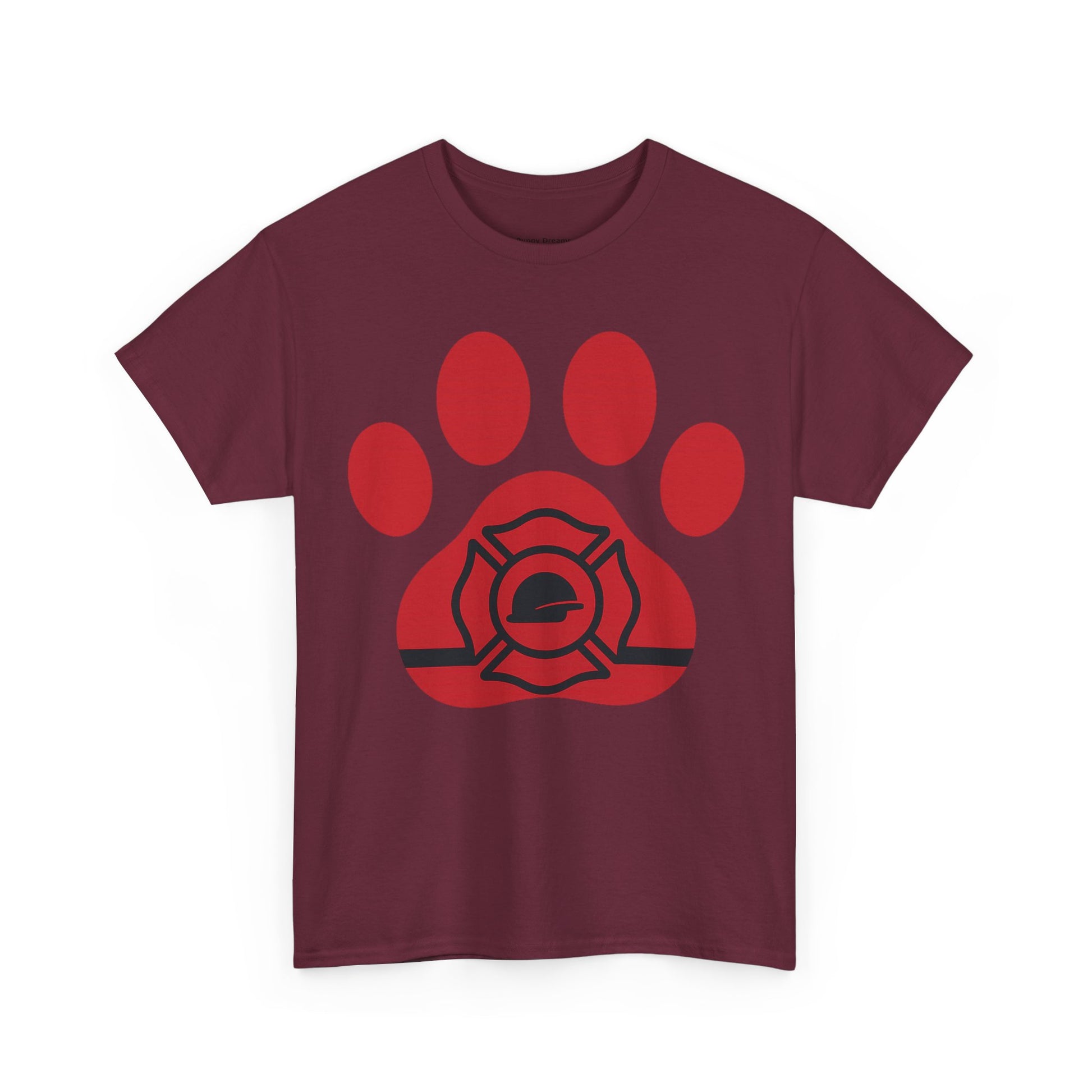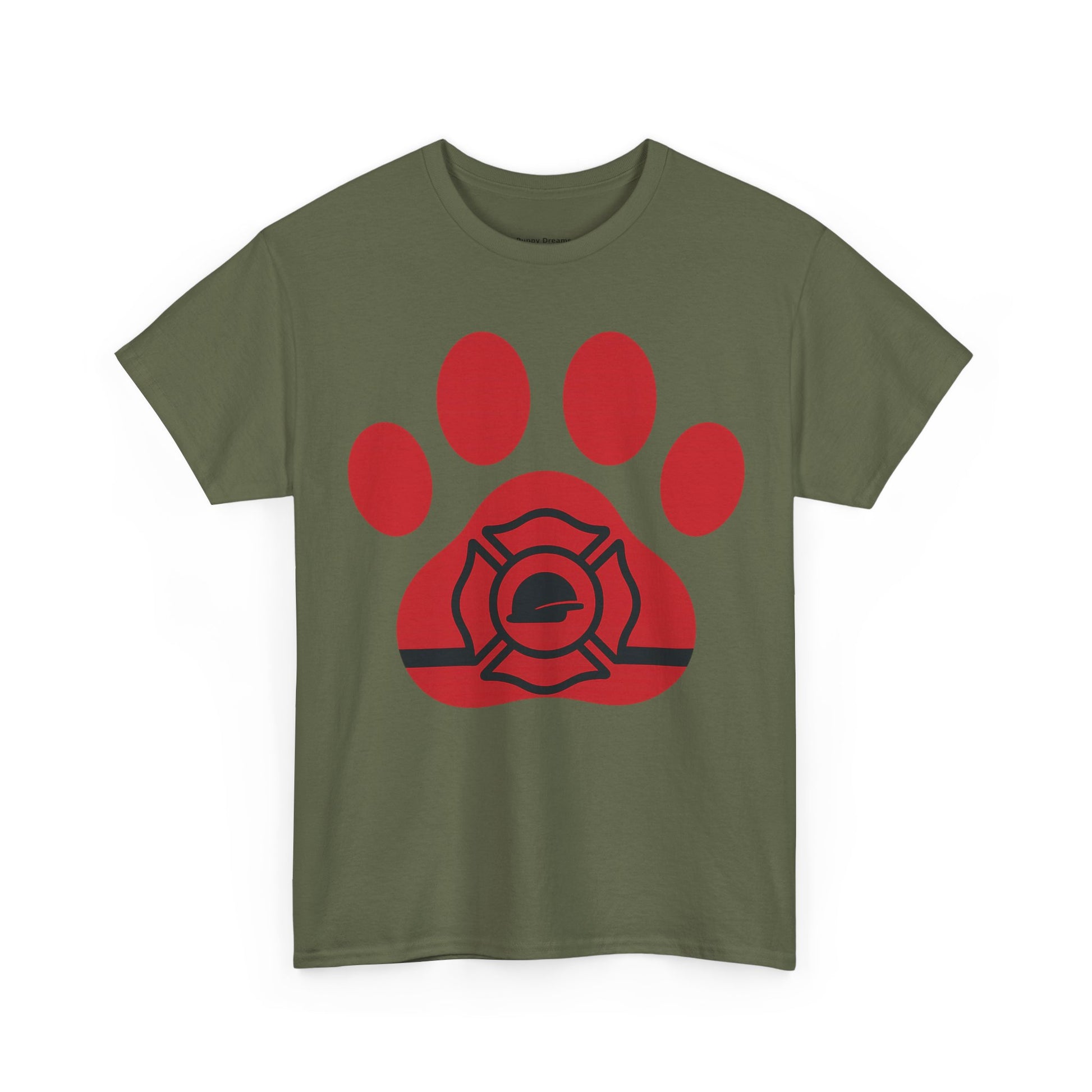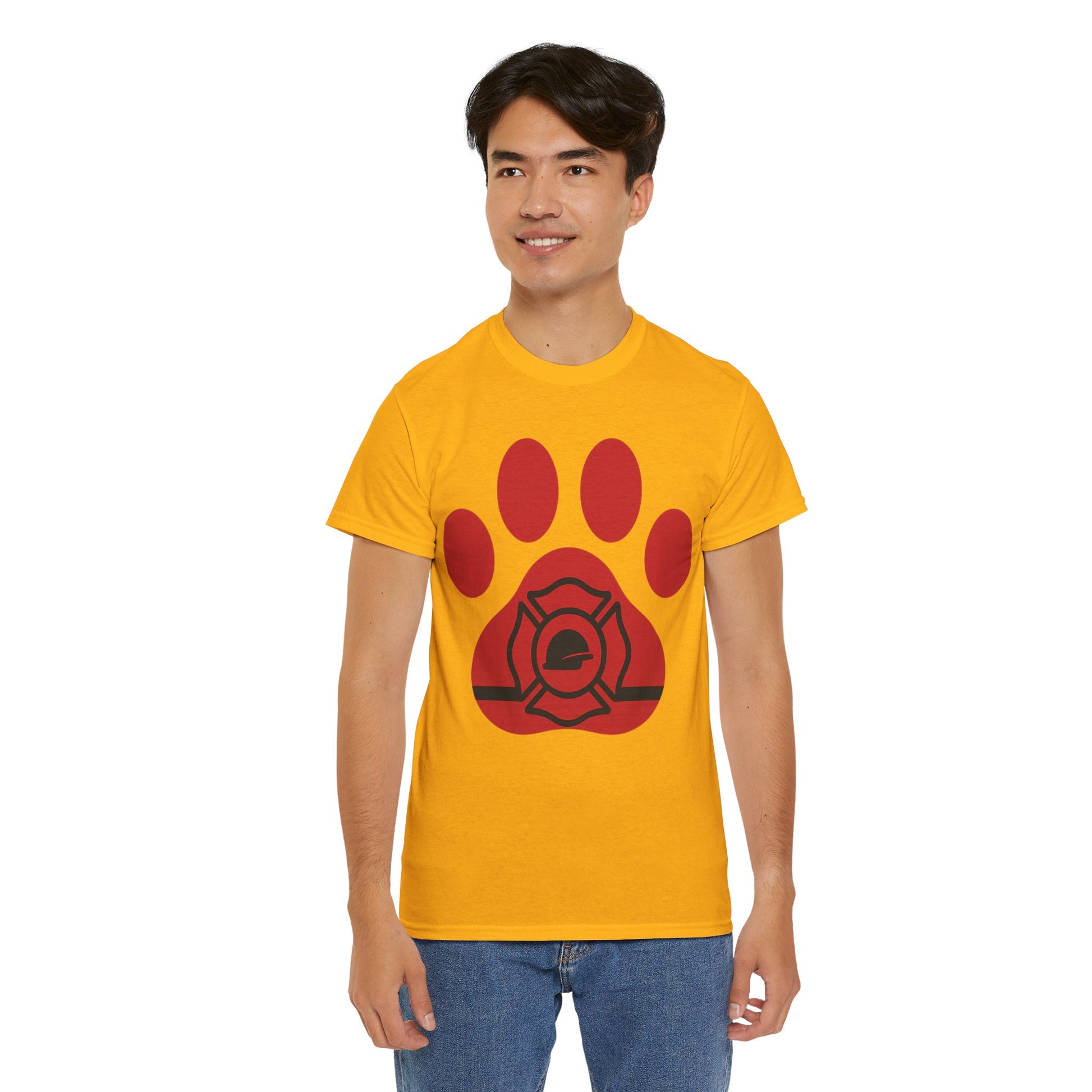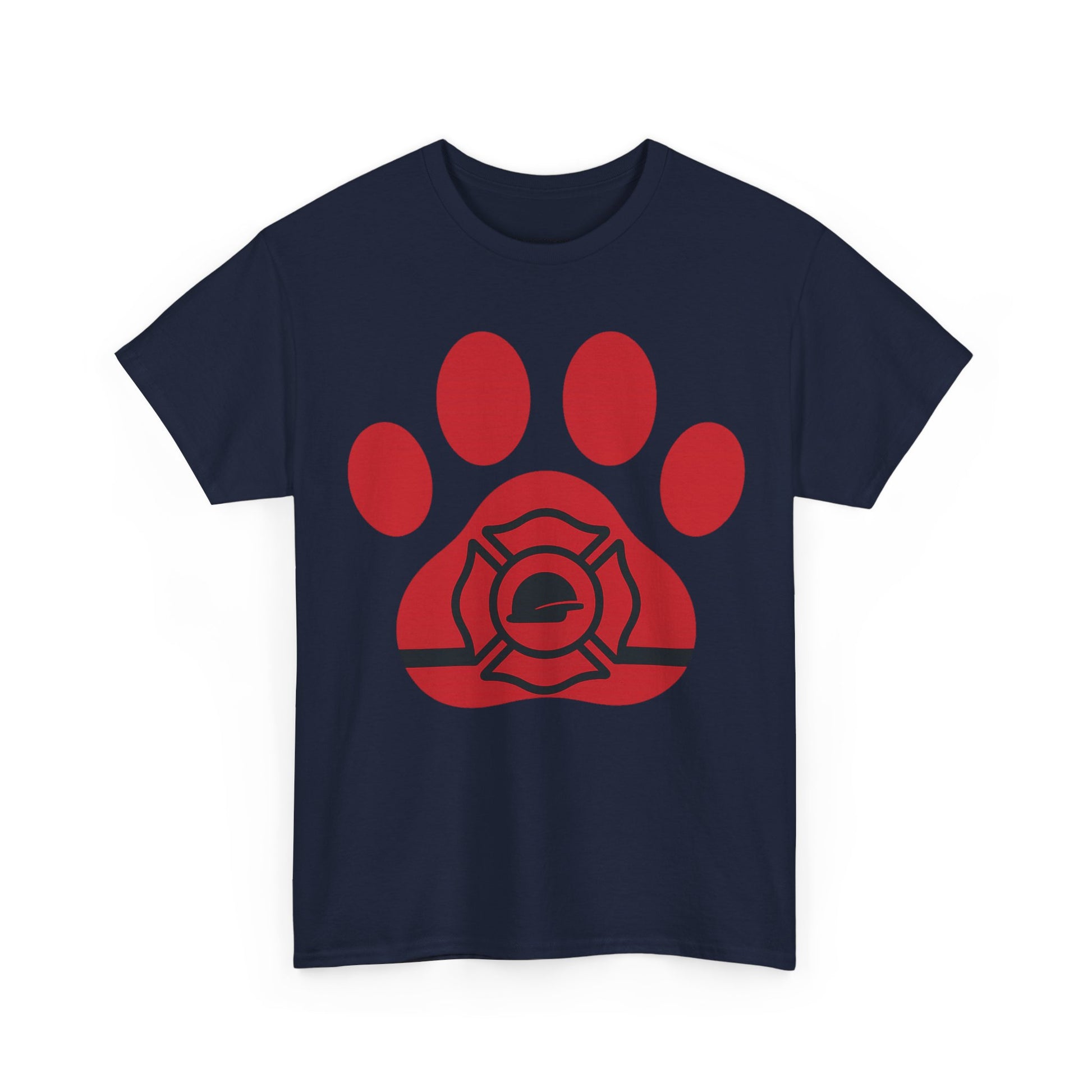 Firefighter Paw Print Tee, Unisex Heavy Cotton T-Shirt, Animal Lover Gift, Firefighter Appreciation, Casual Wear, Pet Lover Apparel