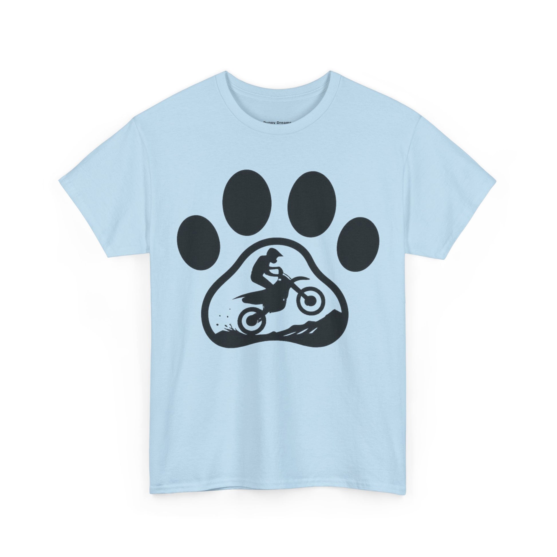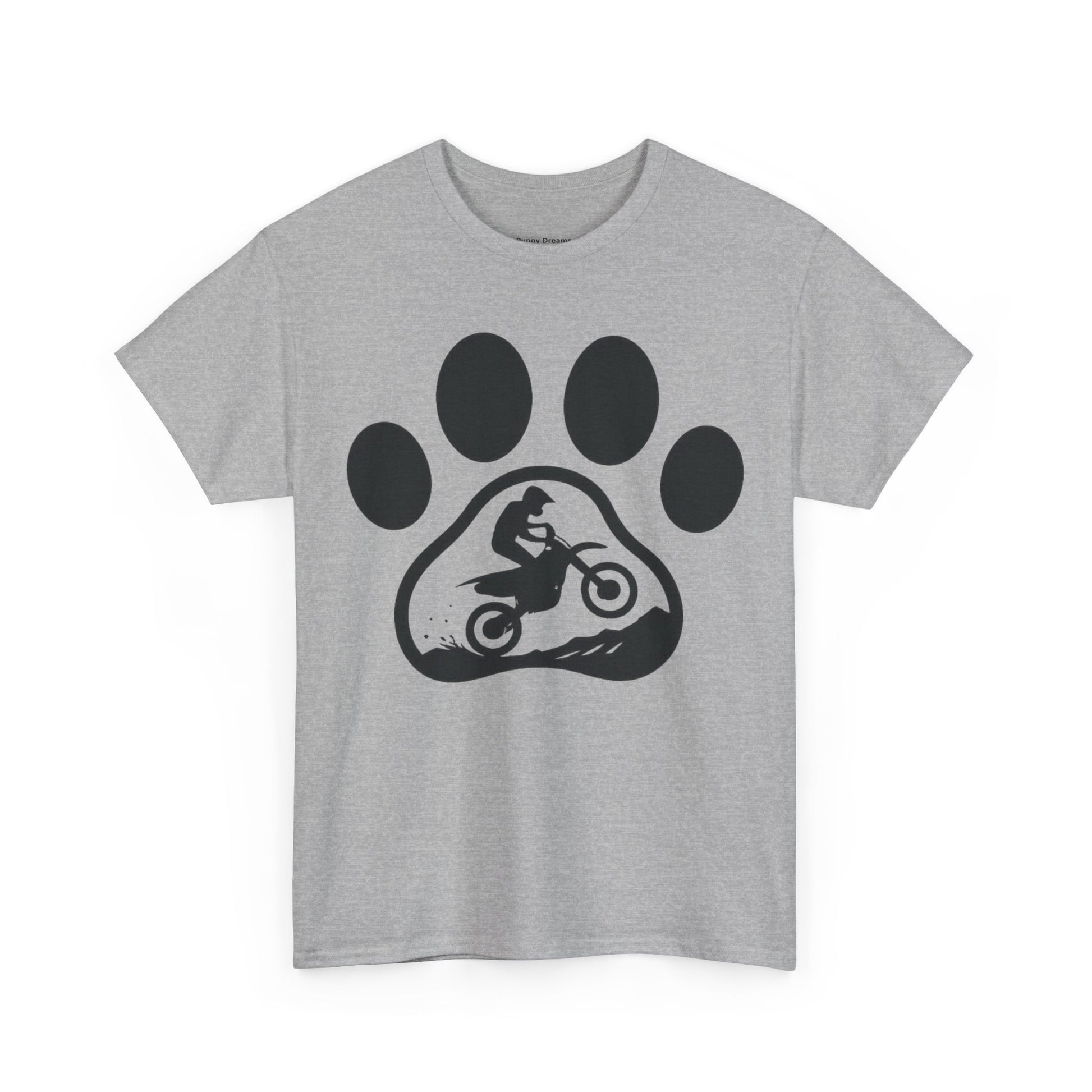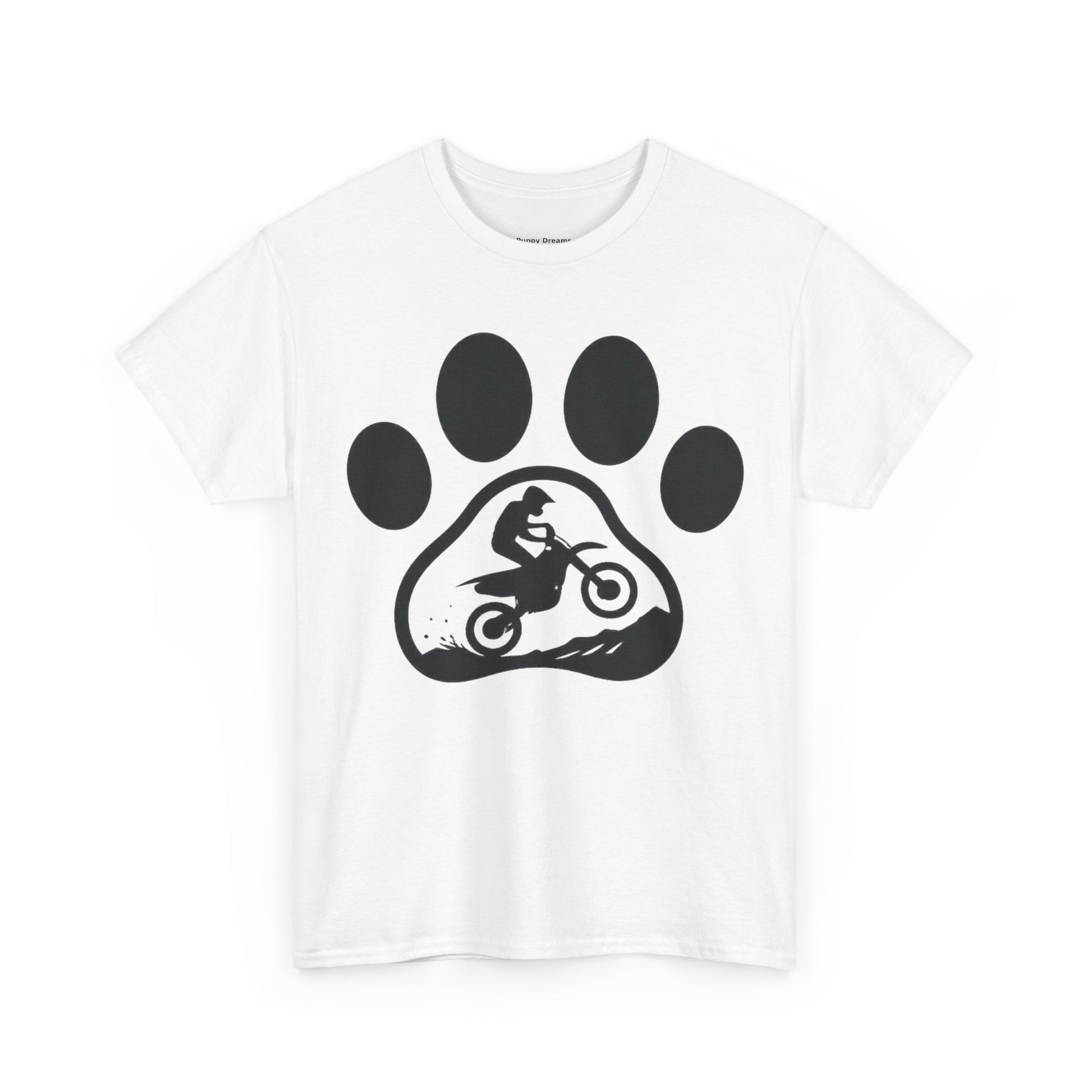 Motorcycle Paw Print Tee for Animal Lovers, Unisex Heavy Cotton Tee, Gift for Bikers, Dog Dad Shirt, Casual Wear, Paw Print Design