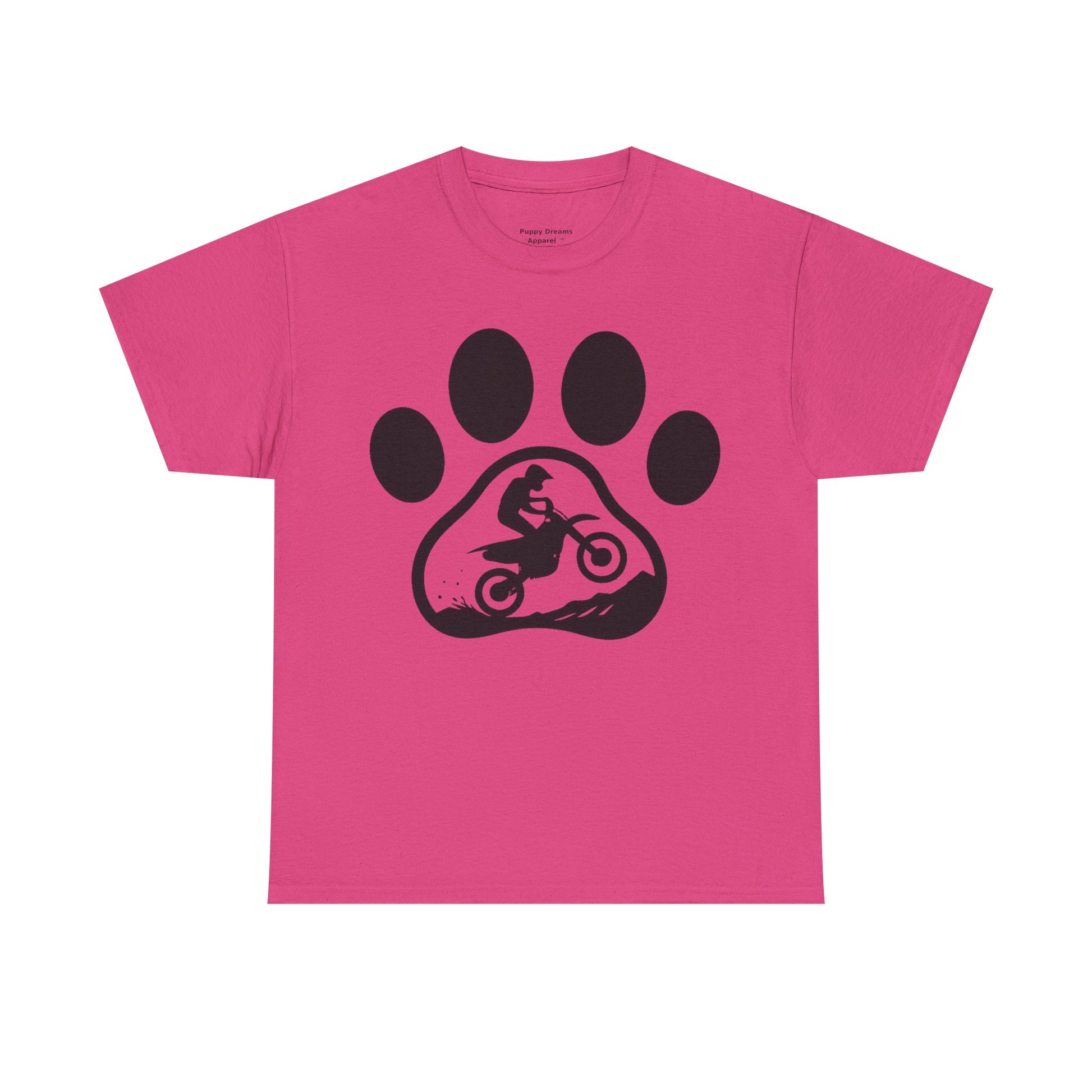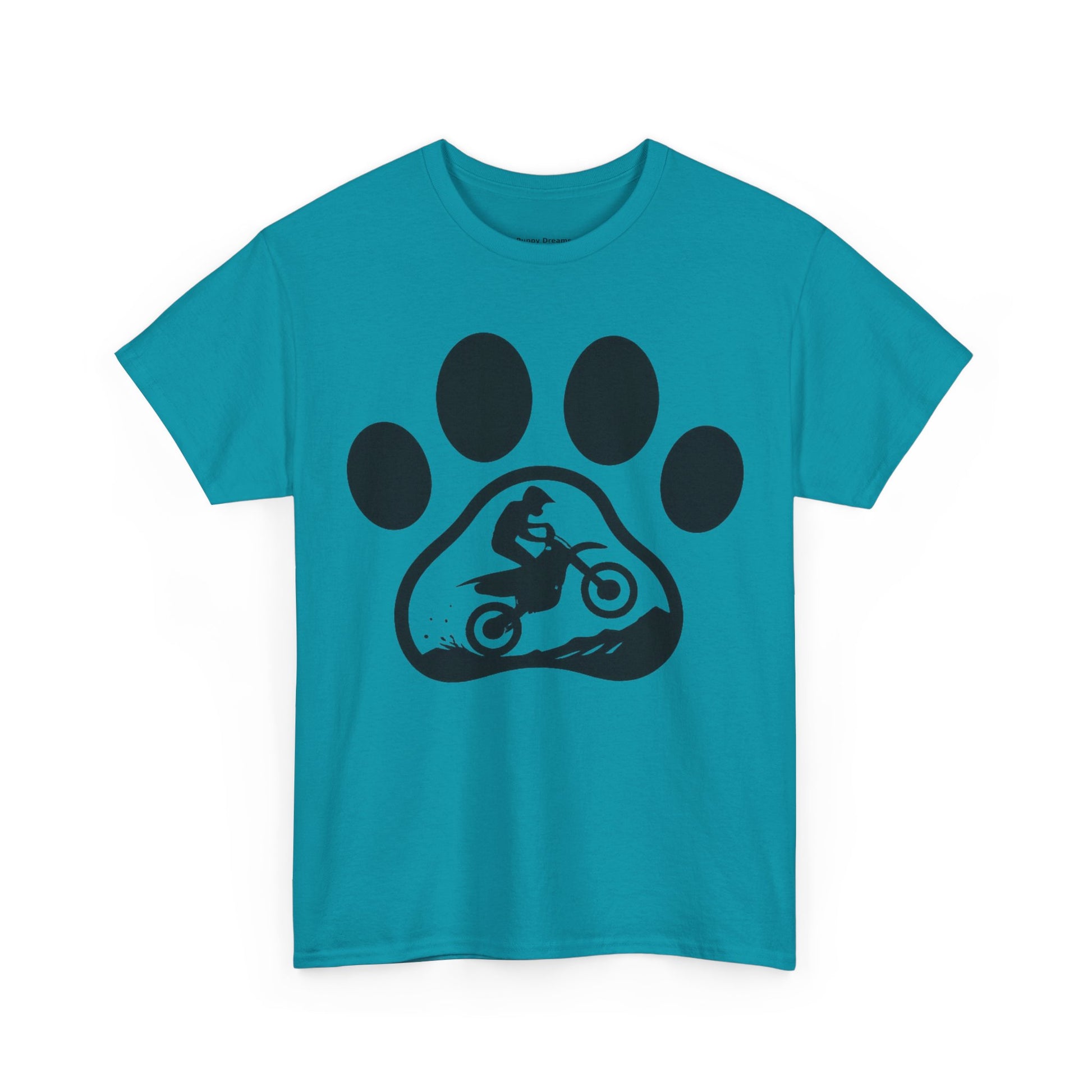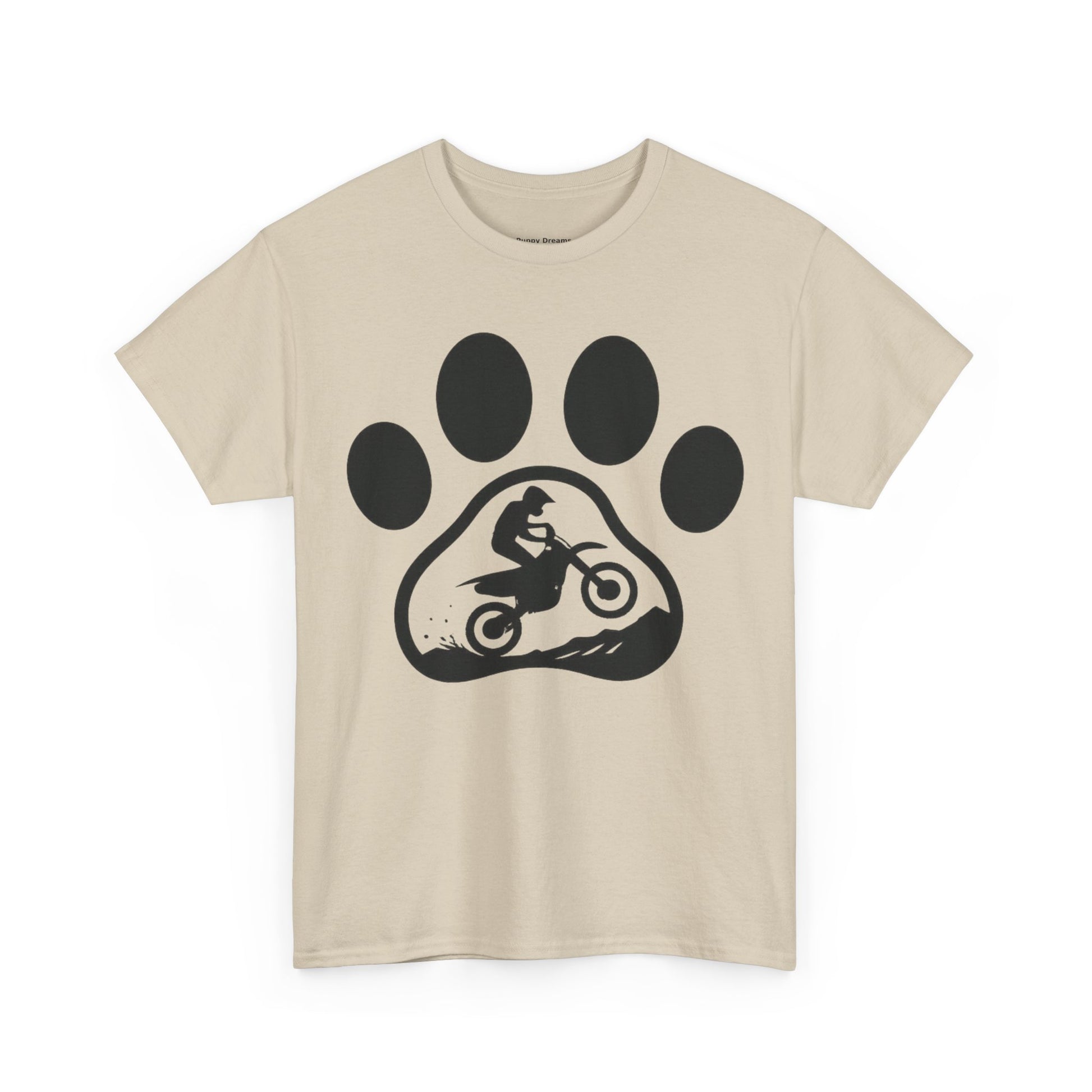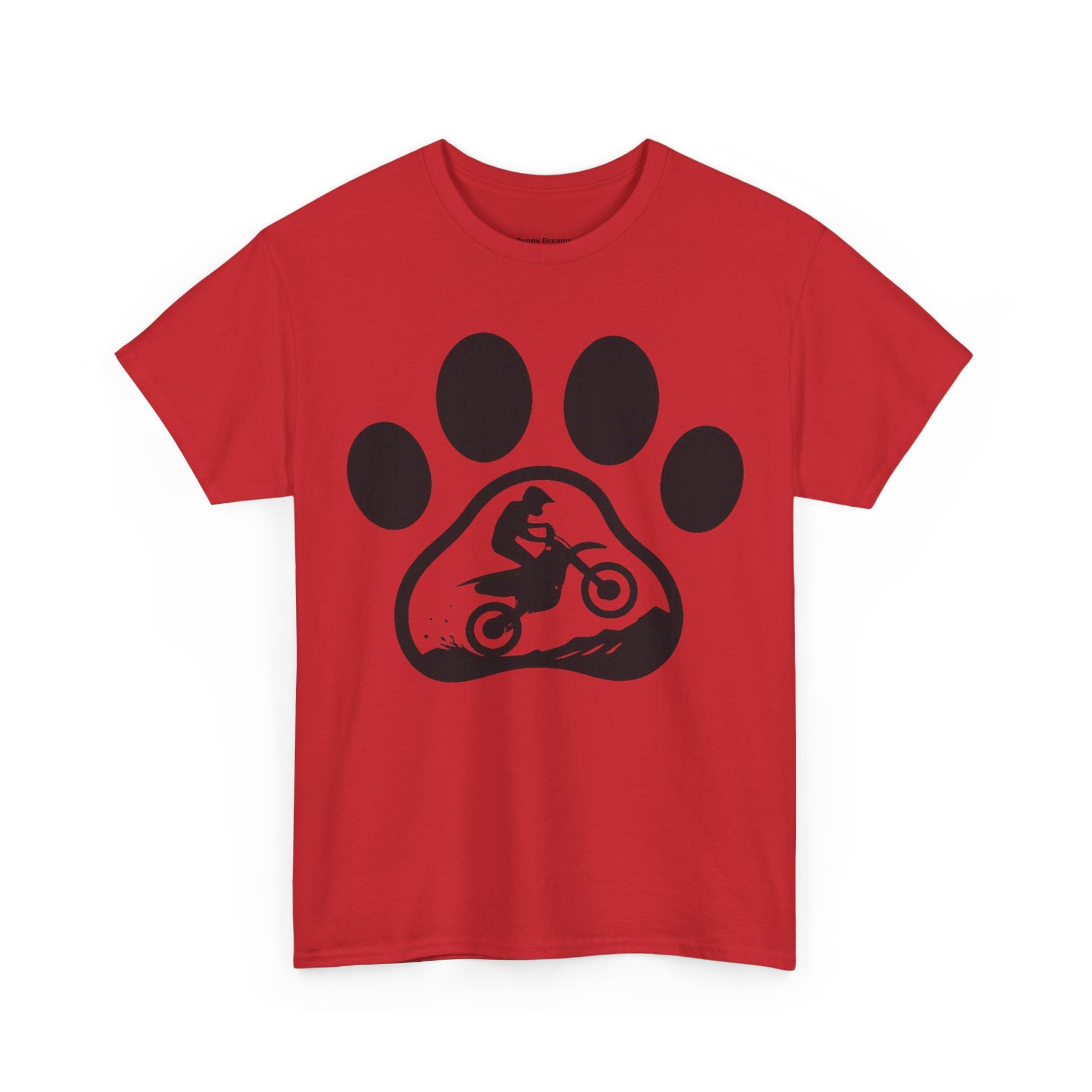 Motorcycle Paw Print Tee for Animal Lovers, Unisex Heavy Cotton Tee, Gift for Bikers, Dog Dad Shirt, Casual Wear, Paw Print Design