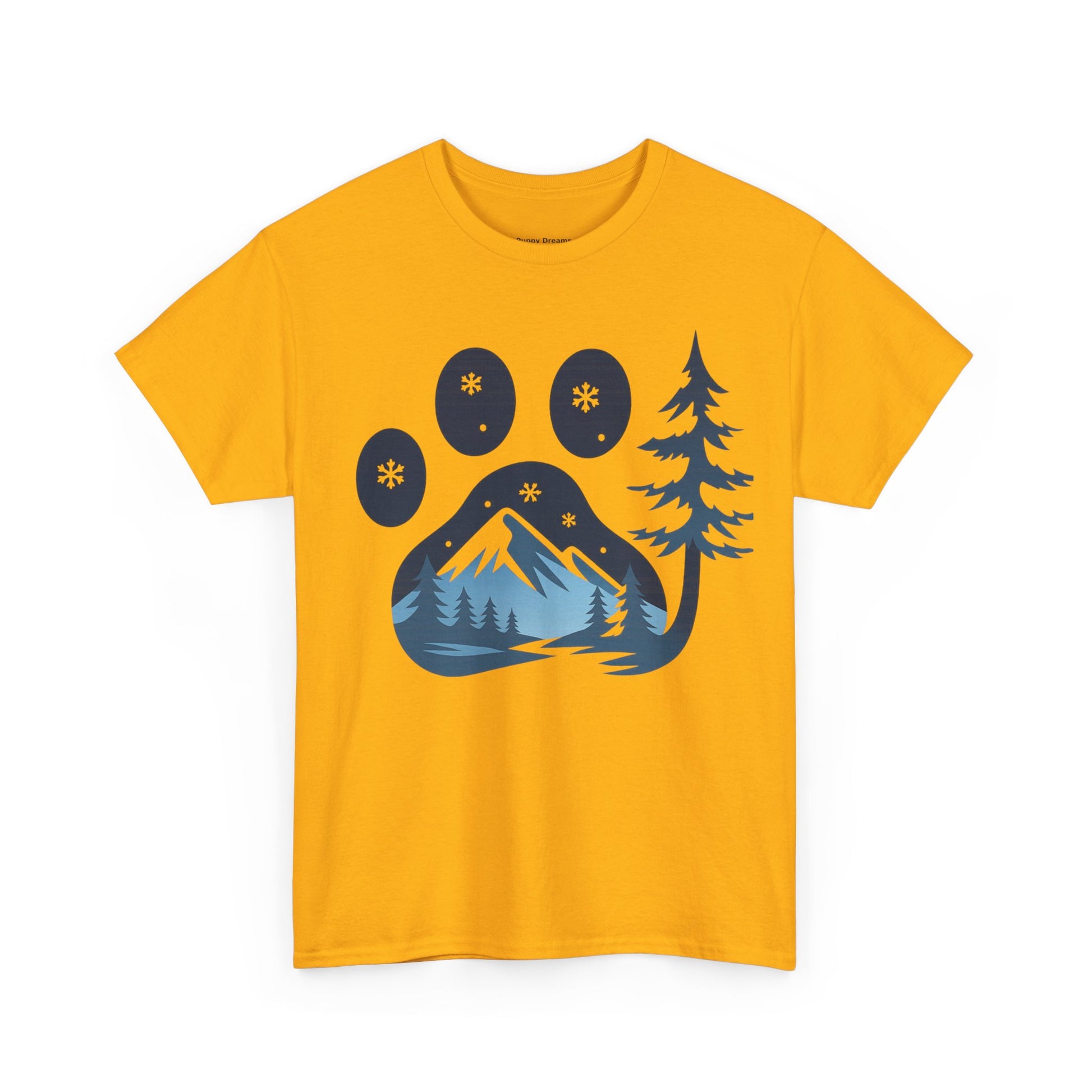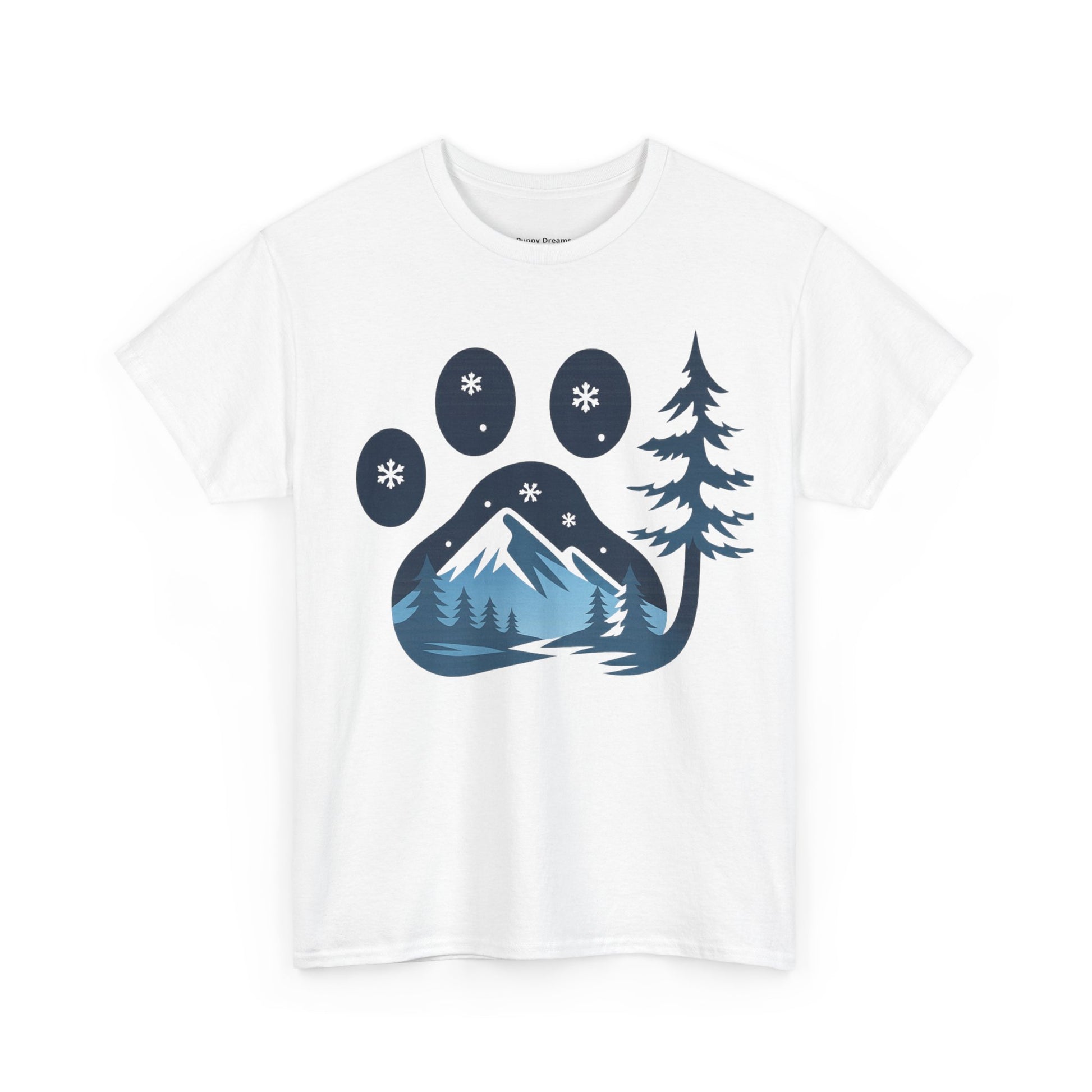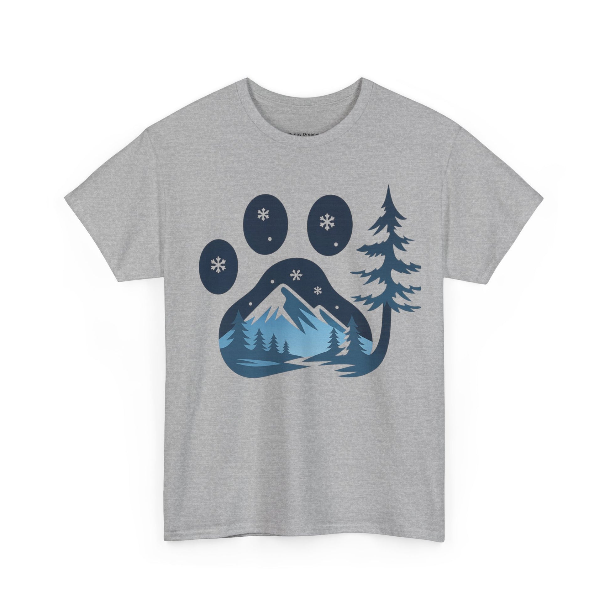 Mountain Paw Print Tee, Nature Lover Gift, Hiking T-Shirt, Animal Print Shirt, Unisex Graphic Tee, Outdoor Adventure Wear