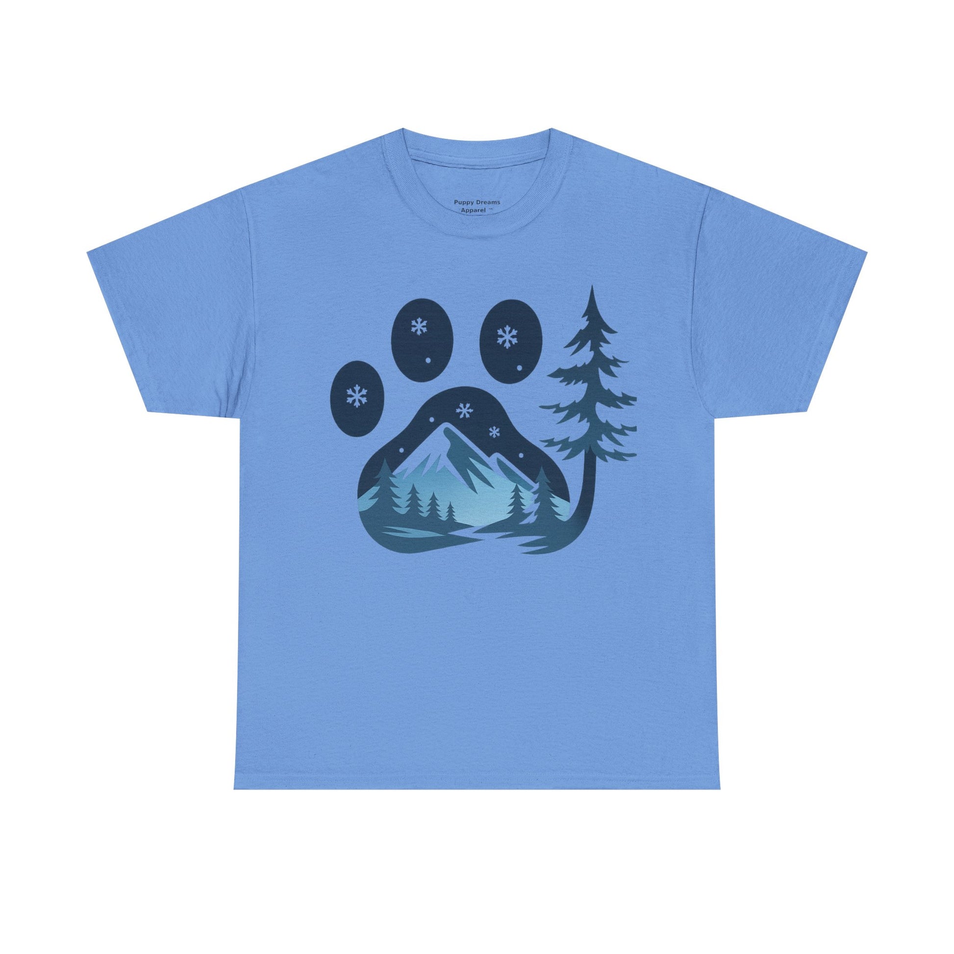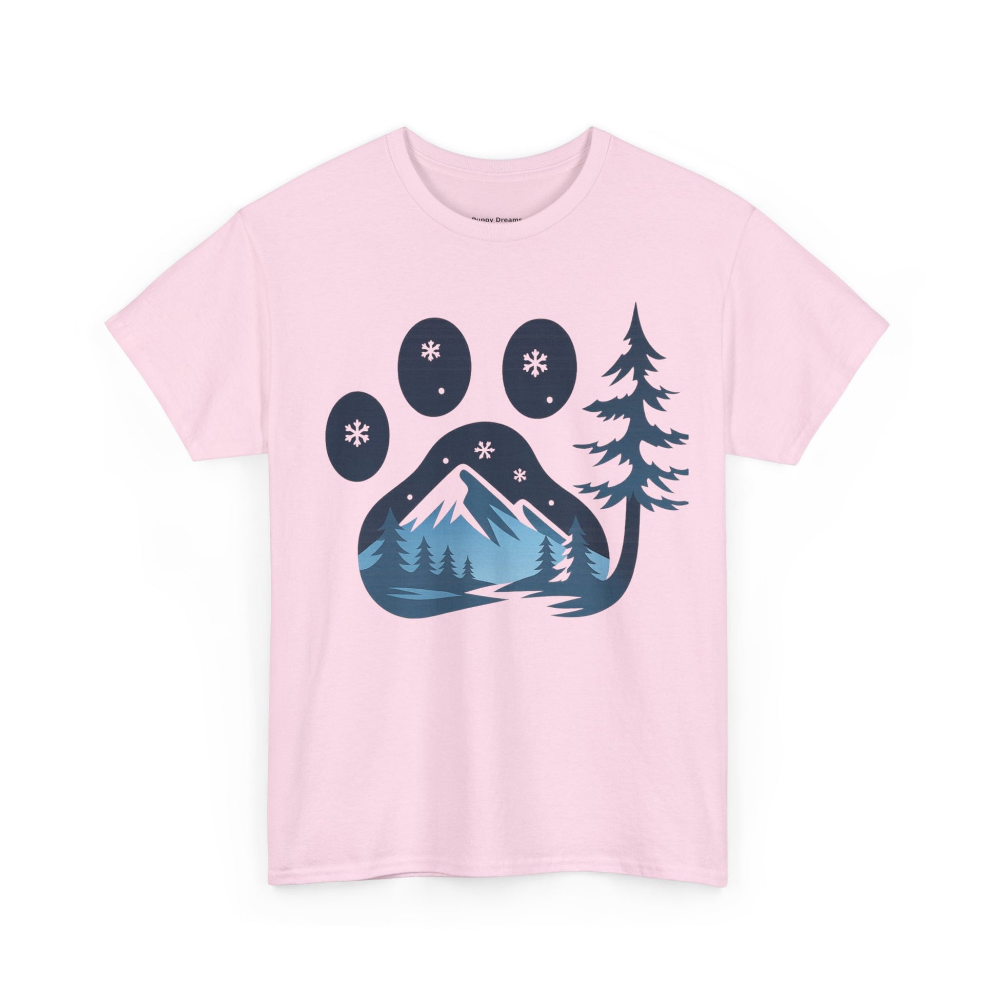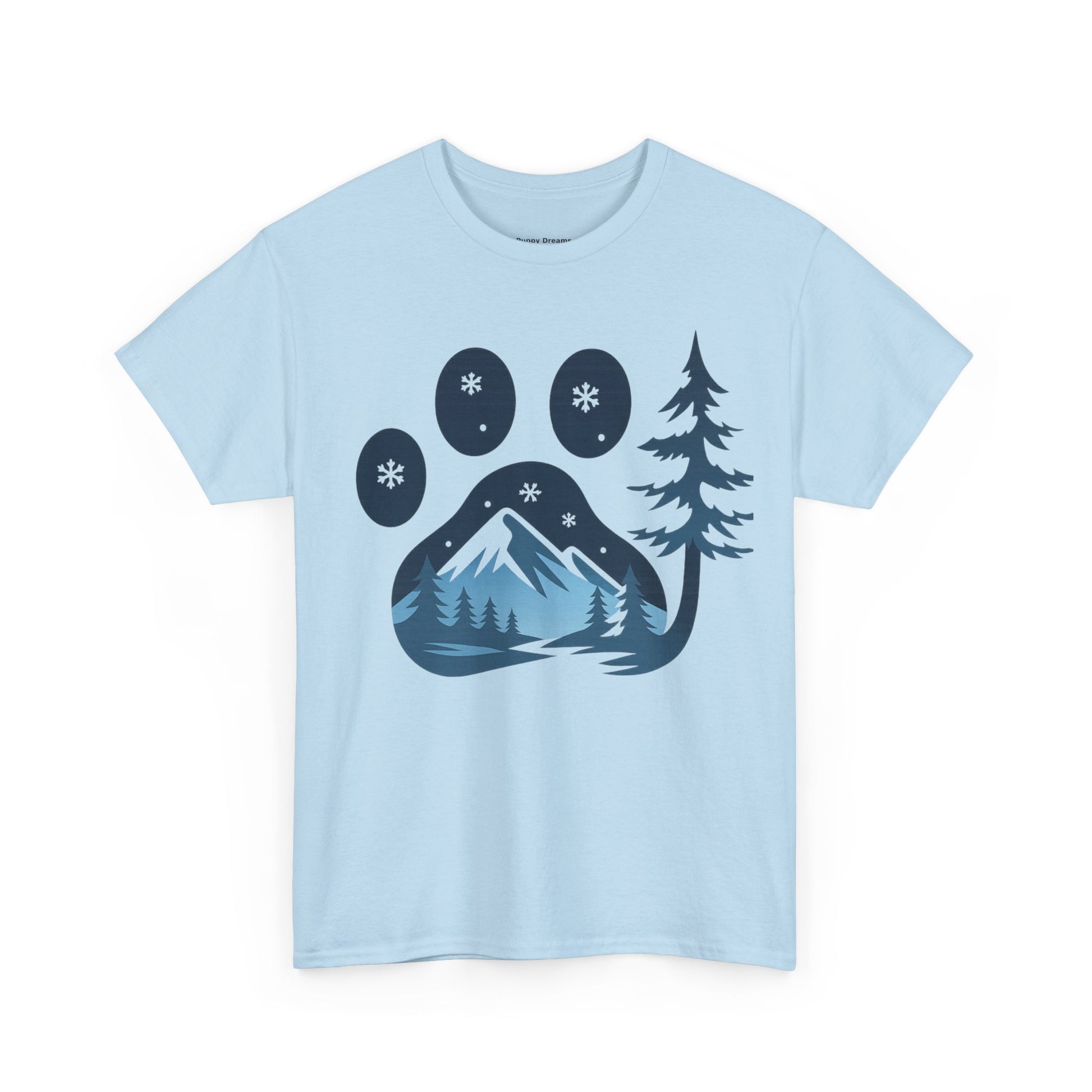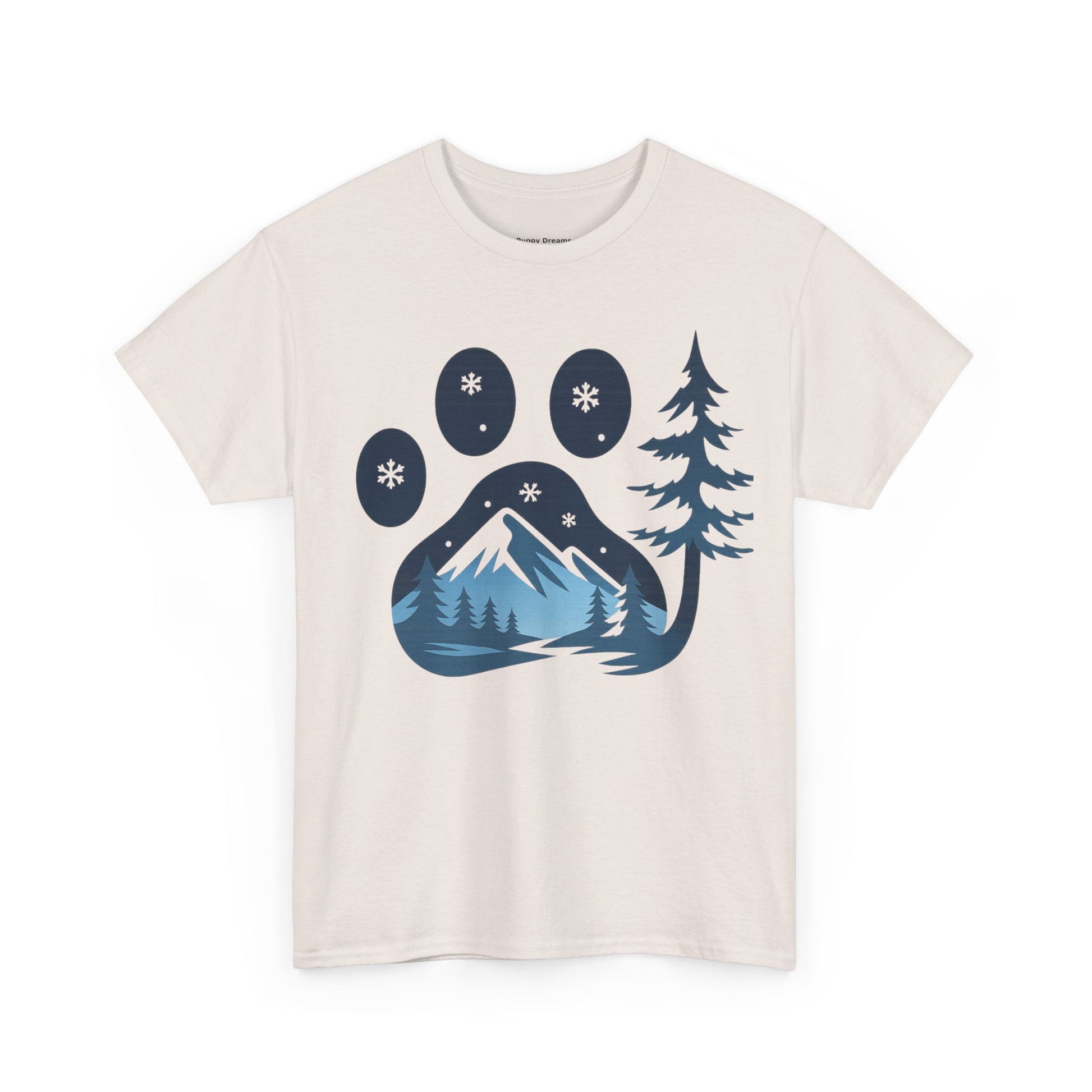 Mountain Paw Print Tee, Nature Lover Gift, Hiking T-Shirt, Animal Print Shirt, Unisex Graphic Tee, Outdoor Adventure Wear