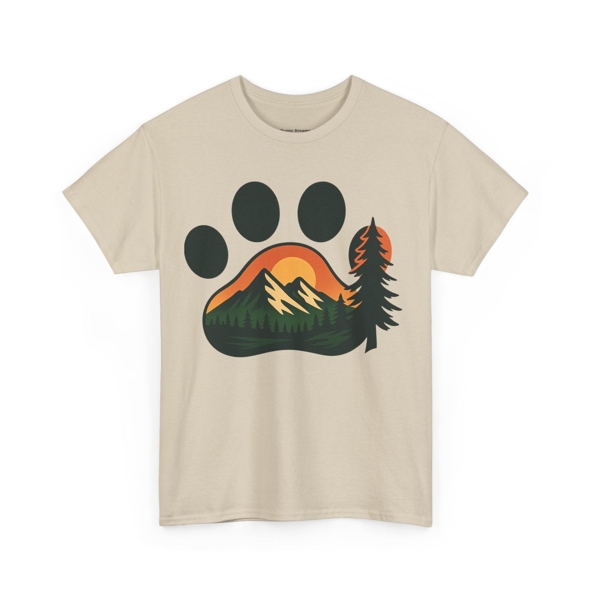 Nature-Inspired Paw Print Tee | Unisex Heavy Cotton T-Shirt for Animal Lovers, Outdoor Enthusiasts, Hiking, Camping, Gift Idea