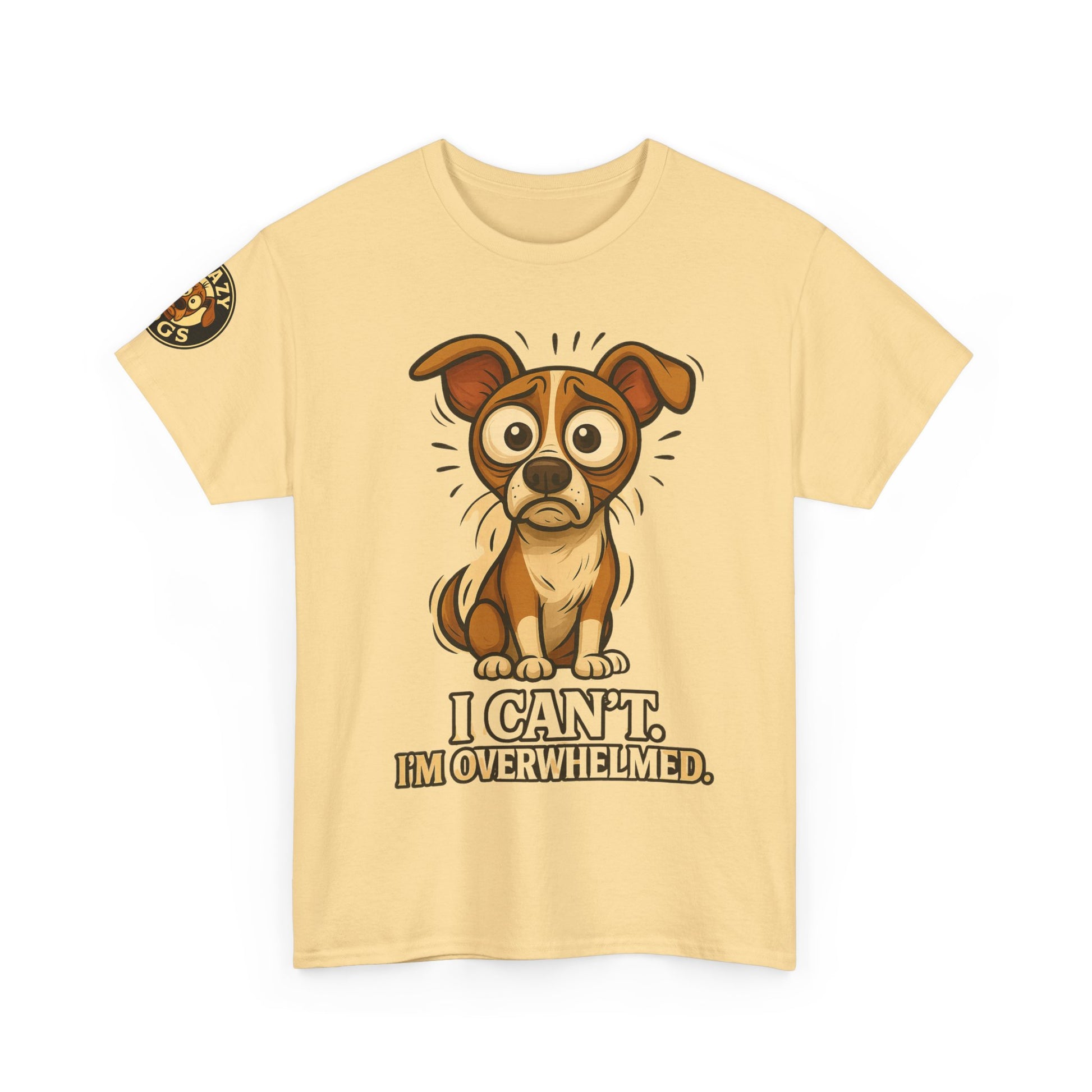 Overwhelmed Pup Tee — Cute Dog "I Can't, I'm Overwhelmed" Graphic T-Shirt