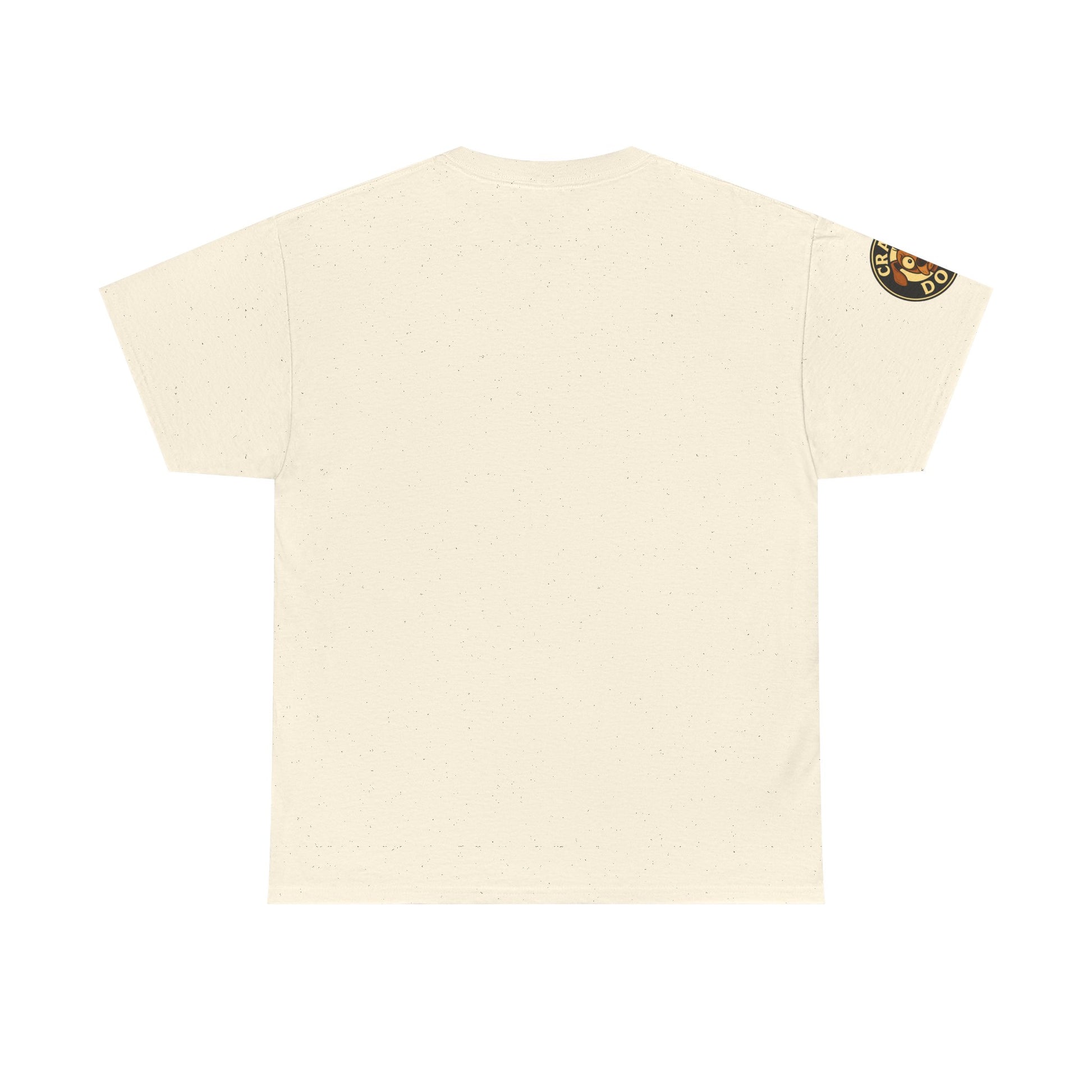 Soft, breathable cotton and a touch of playful personality — this classic tee gives you everyday comfort with a heartwarming twist. A wide-eyed, anxious little dog sits front and center, its big eyes and drooped ears capturing that exact moment when life feels like a lot. Below the illustration, the text reads “I CAN’T. I’M OVERWHELMED.” in a warm, hand-drawn style that balances humor and honesty. The print extends to a small badge on the sleeve for a subtle, finished look.