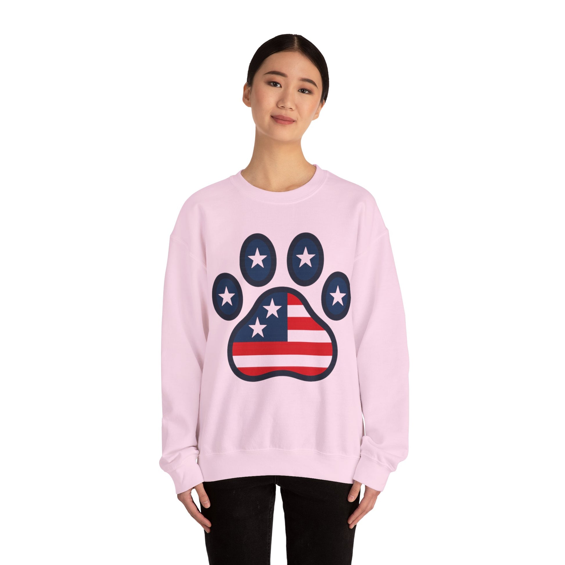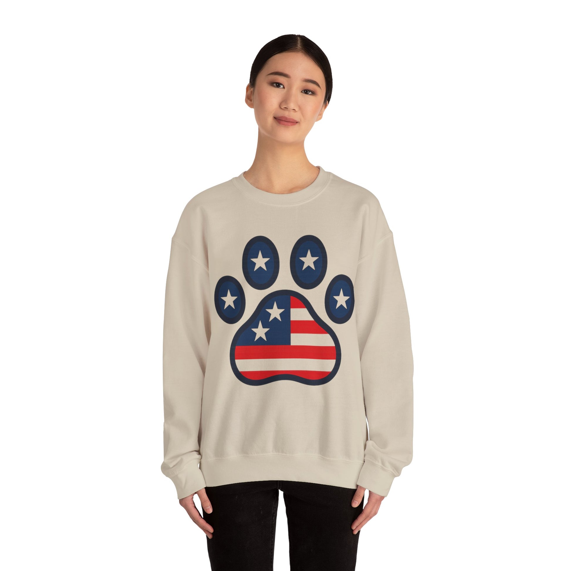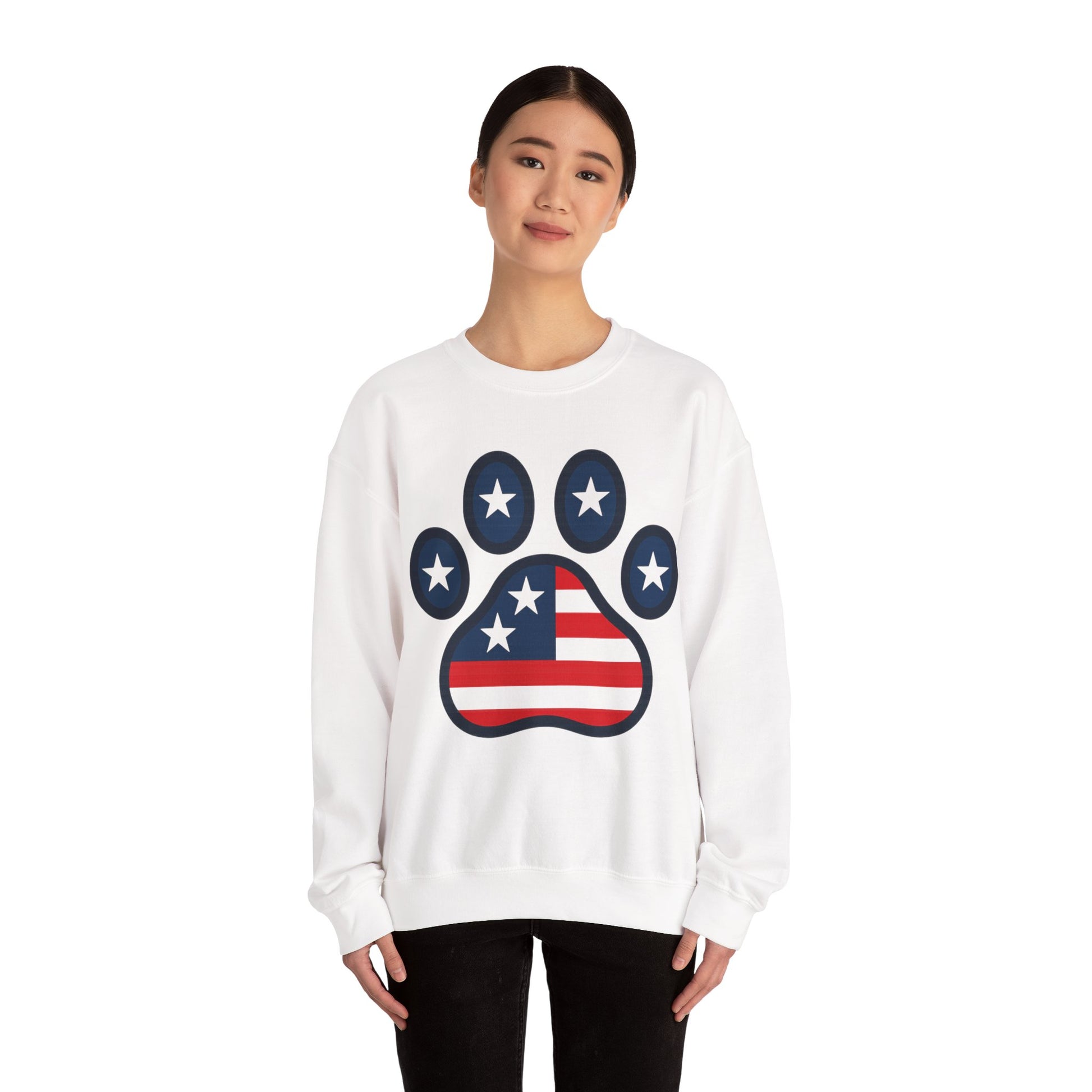Patriotic Paw Print Crewneck Sweatshirt, Dog Lover Gift, USA Sweatshirt, Fourth of July Apparel, Animal Print Sweatshirt