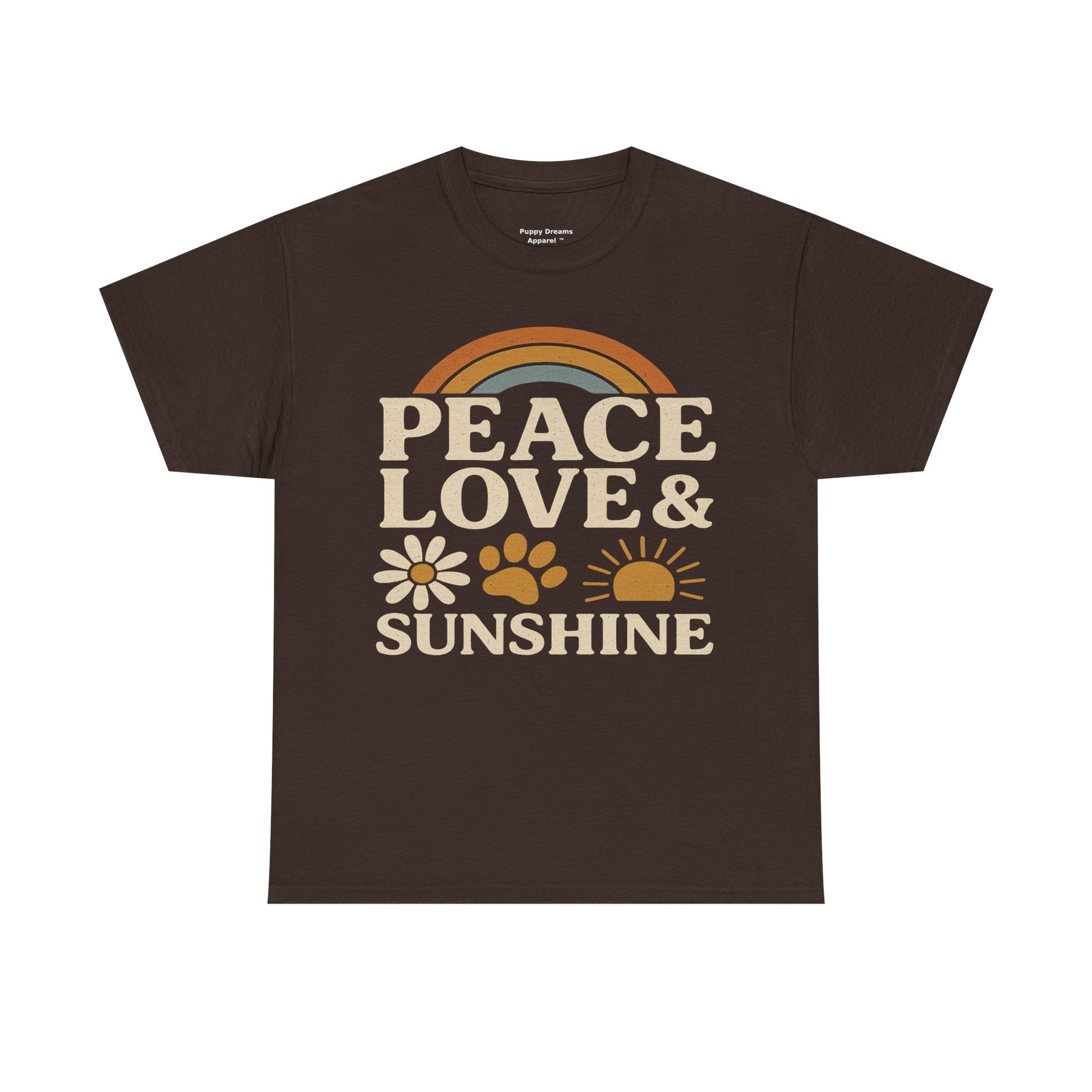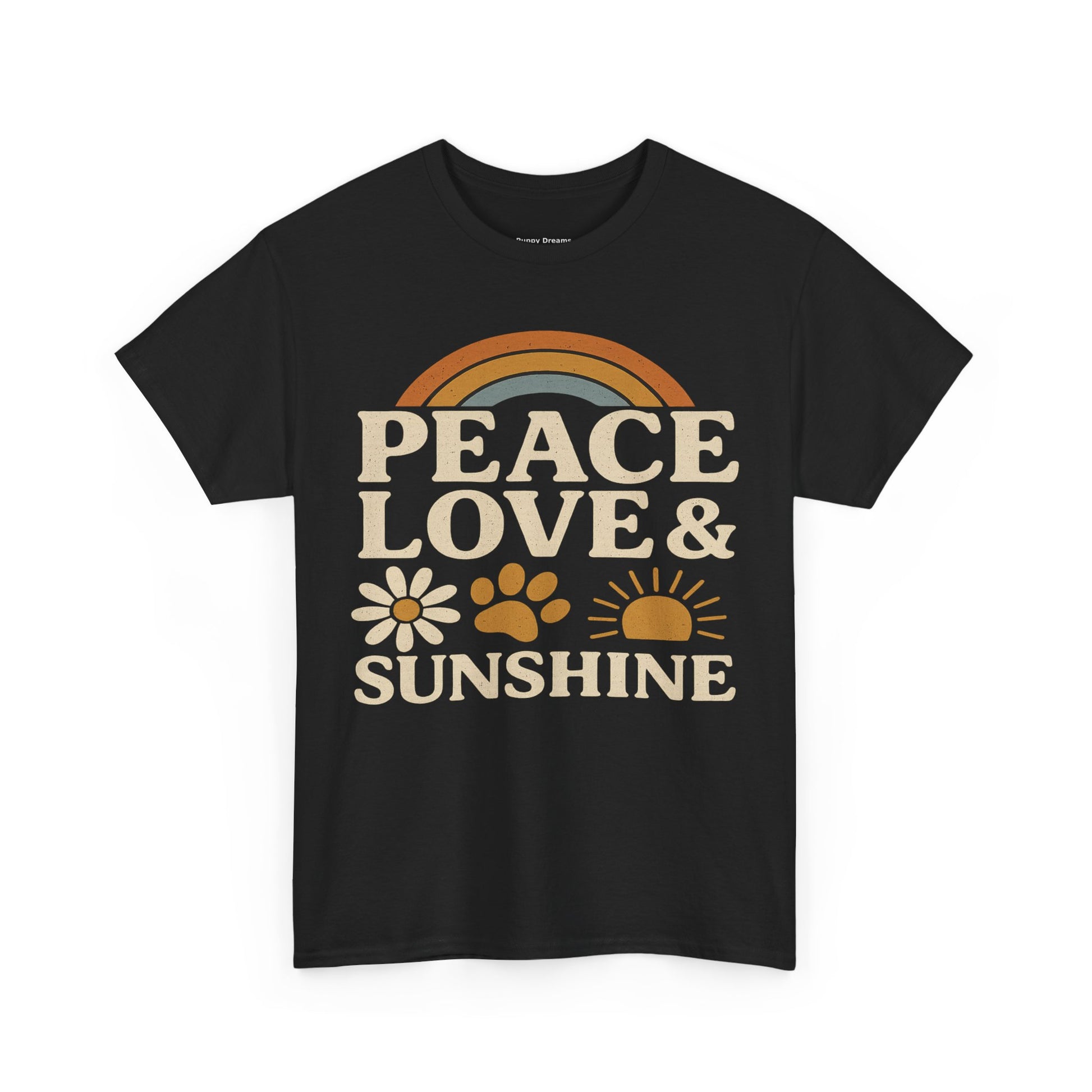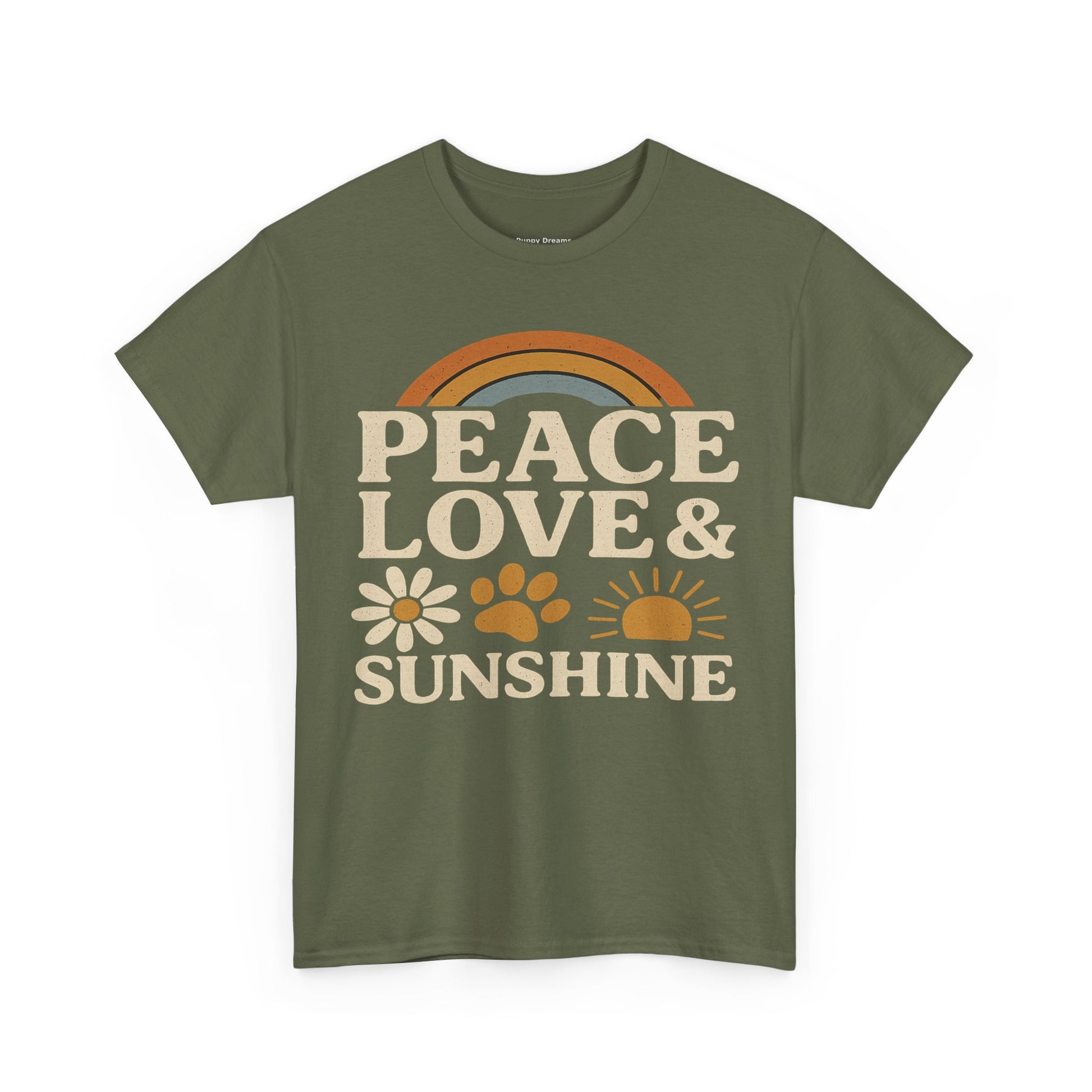Peace Love Sunshine Unisex Heavy Cotton Tee – Cozy Vibes, Perfect for Casual Wear, Gift for Animal Lovers, Summer Days, Everyday Comfort