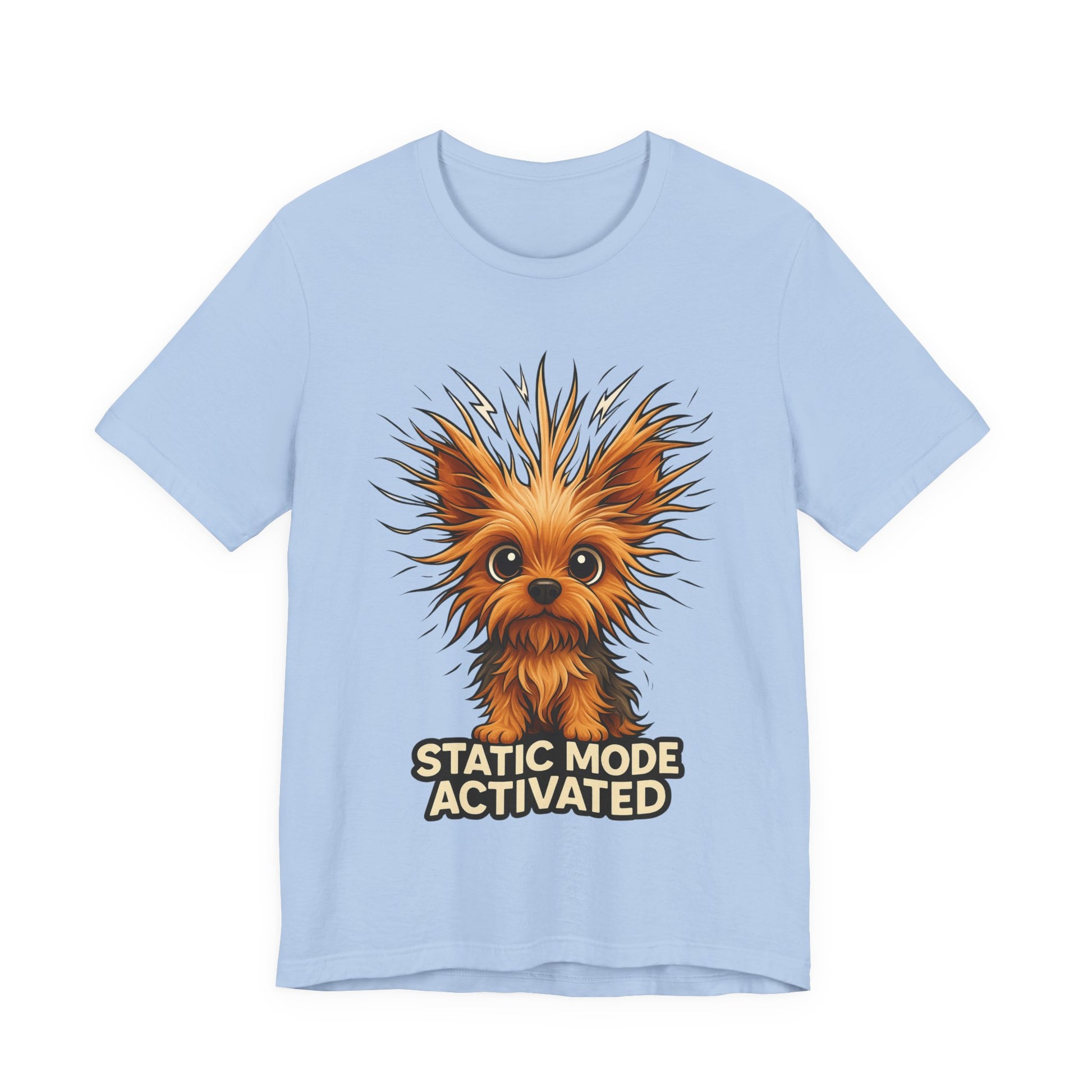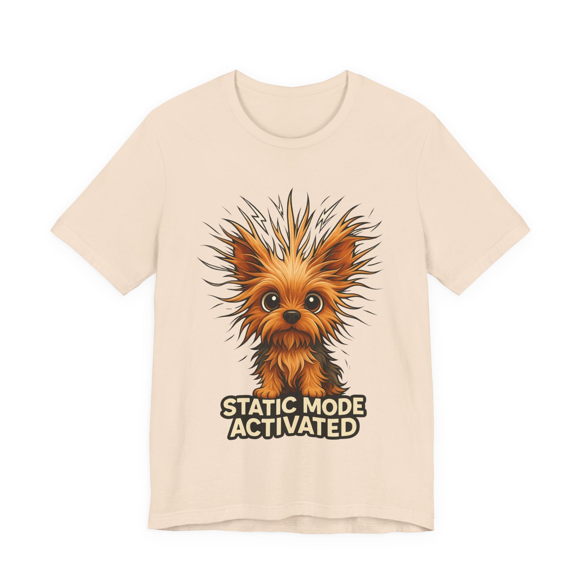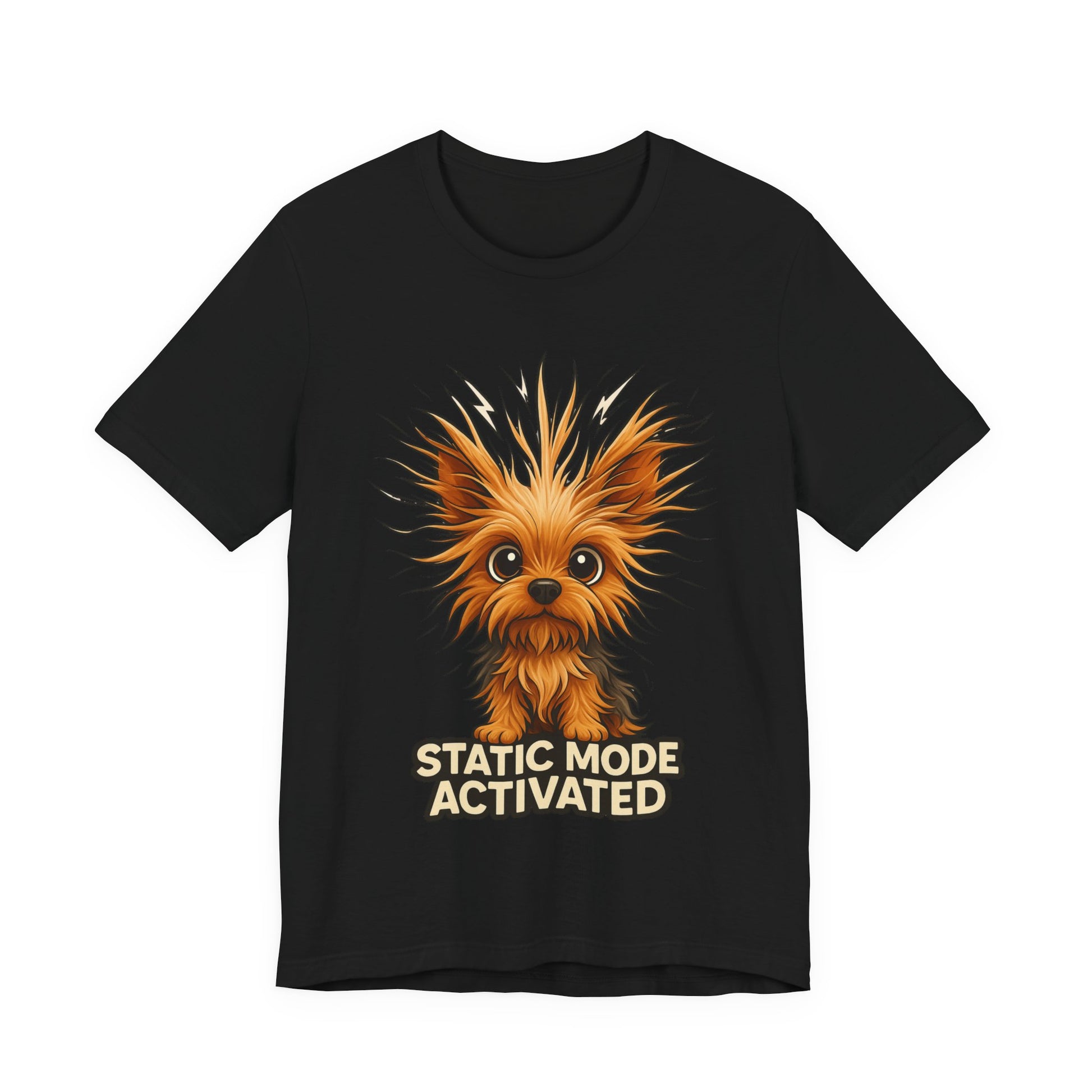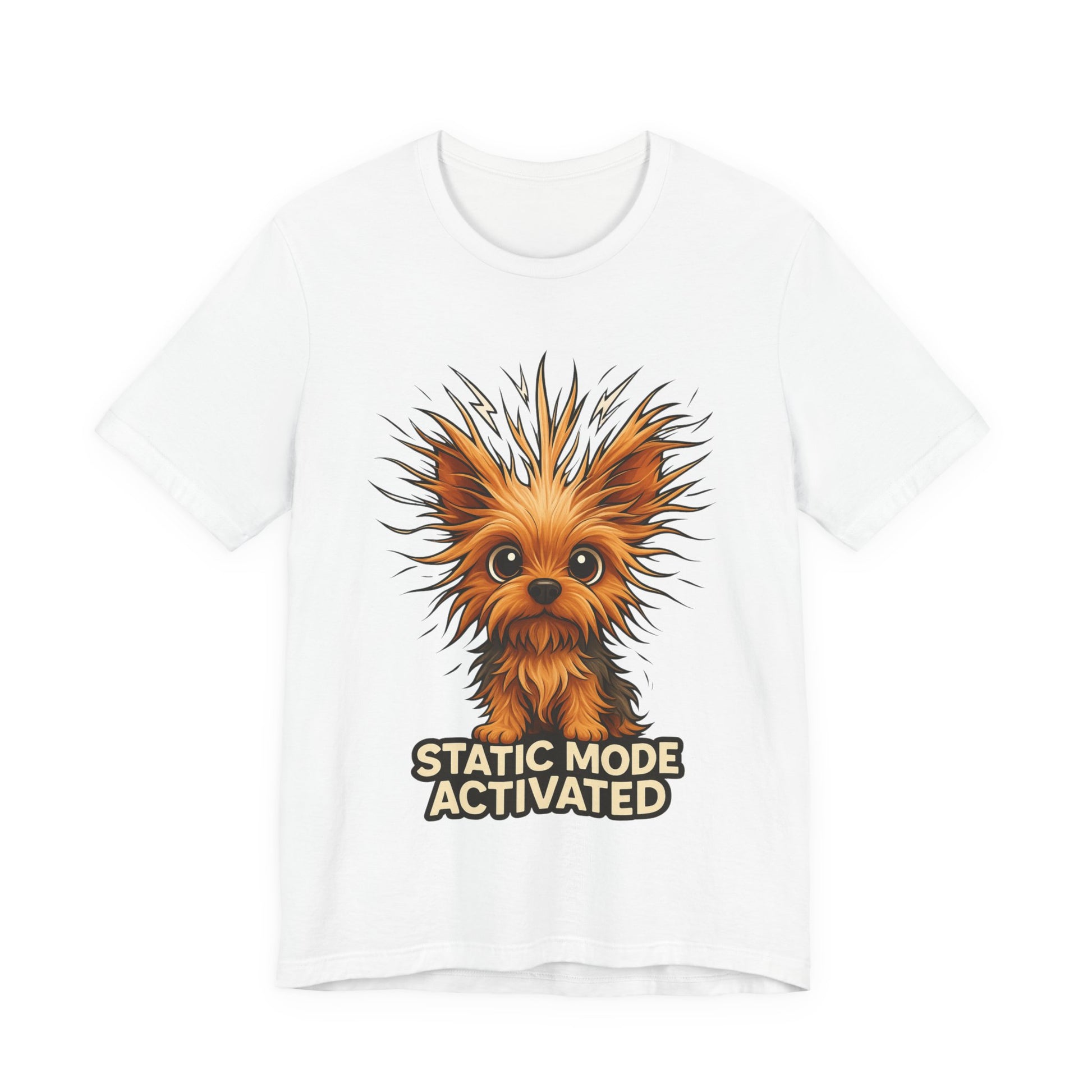 Static Mode Activated Tee — Funny Static Hair Dog Graphic T-Shirt