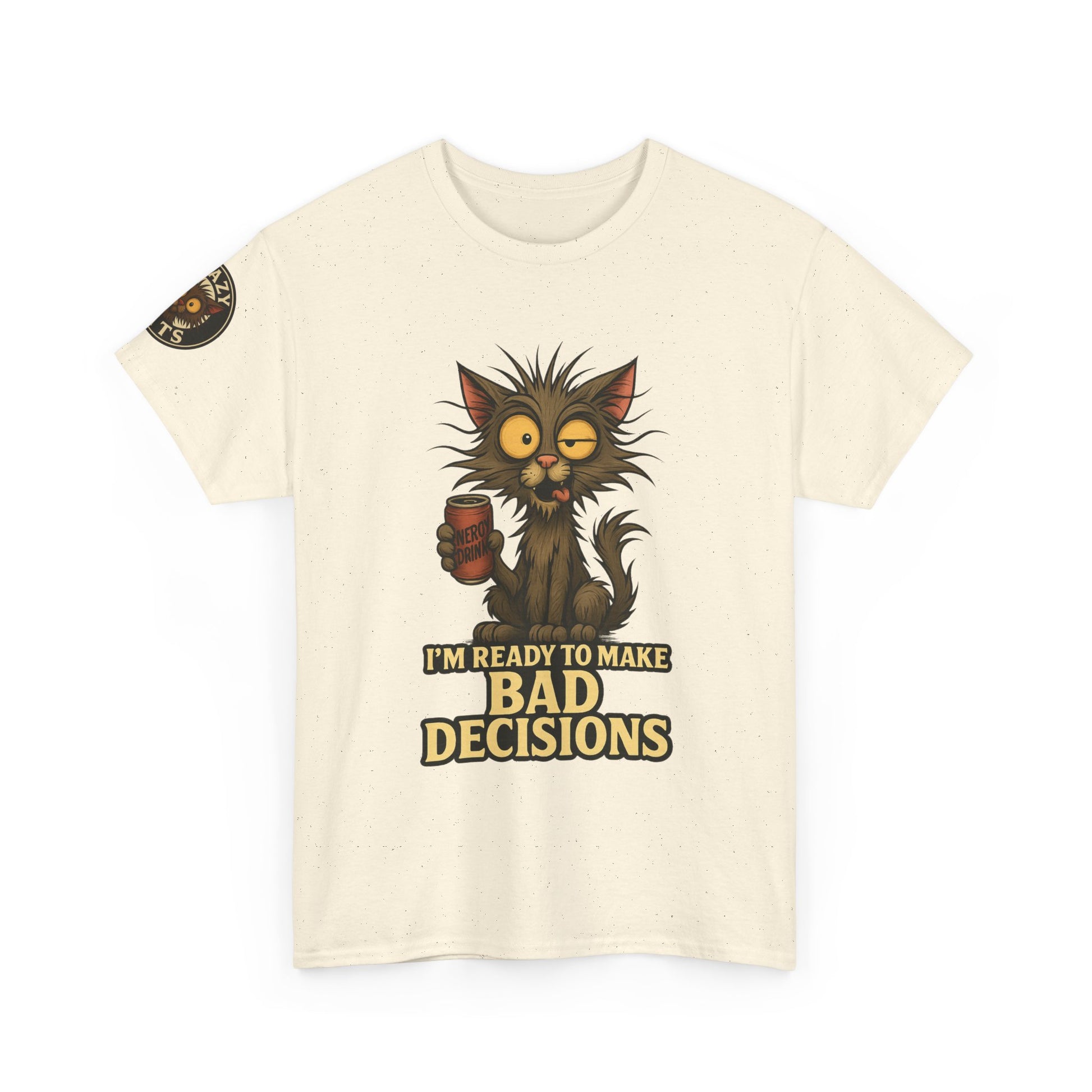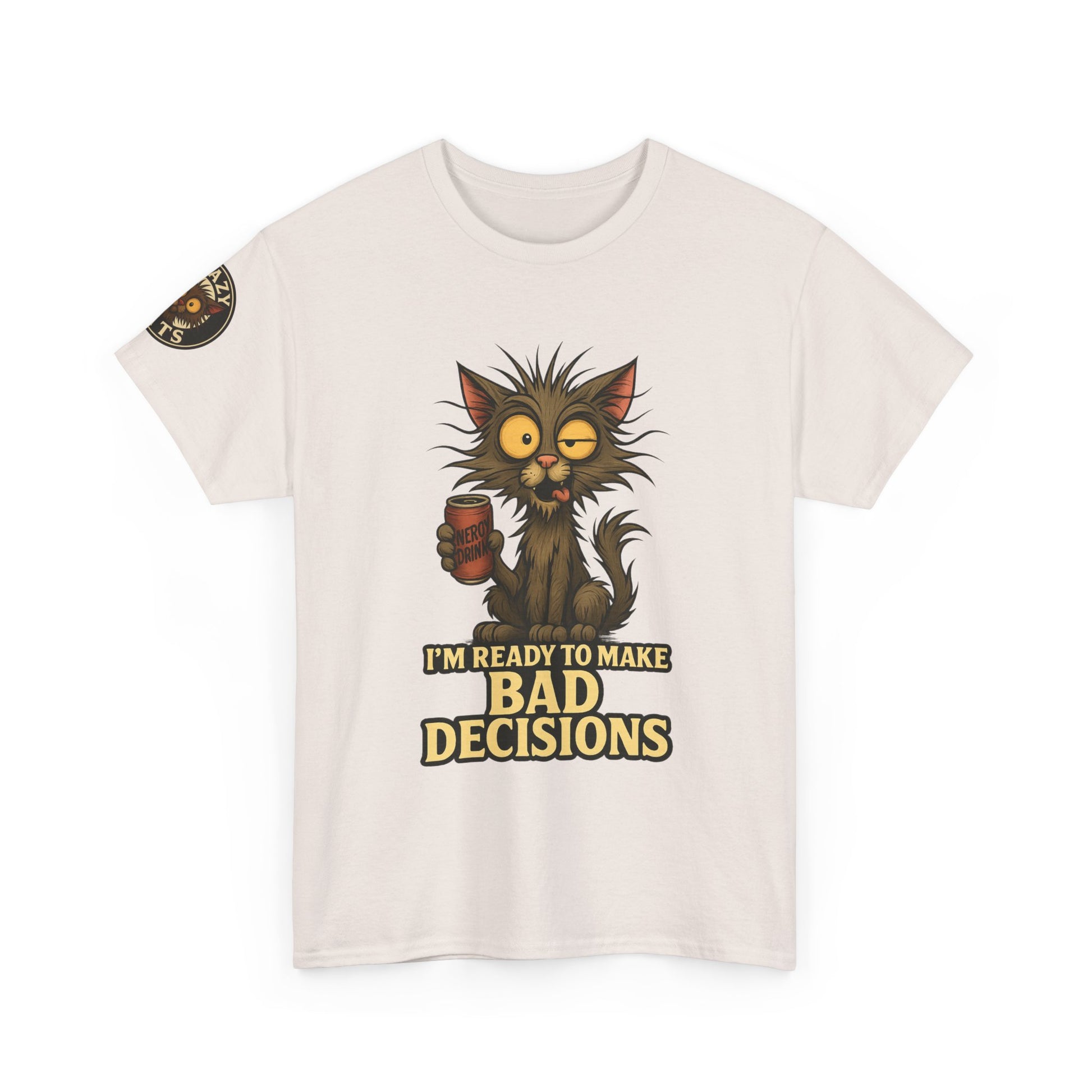 T-Shirt — "I’m Ready to Make Bad Decisions" Funny Cat Graphic Tee