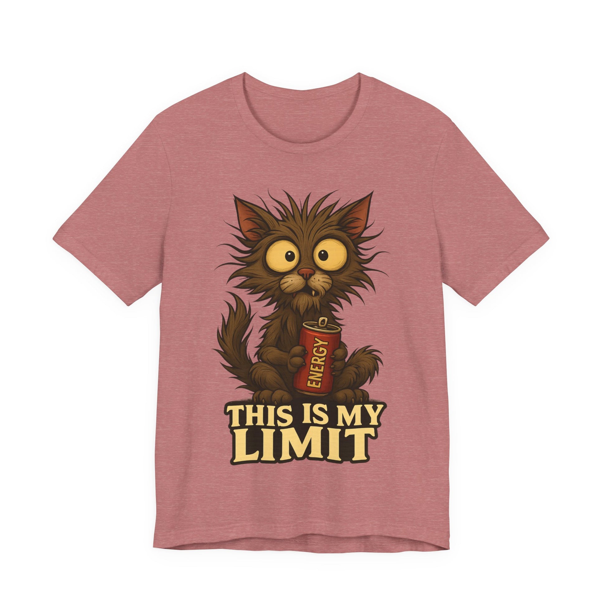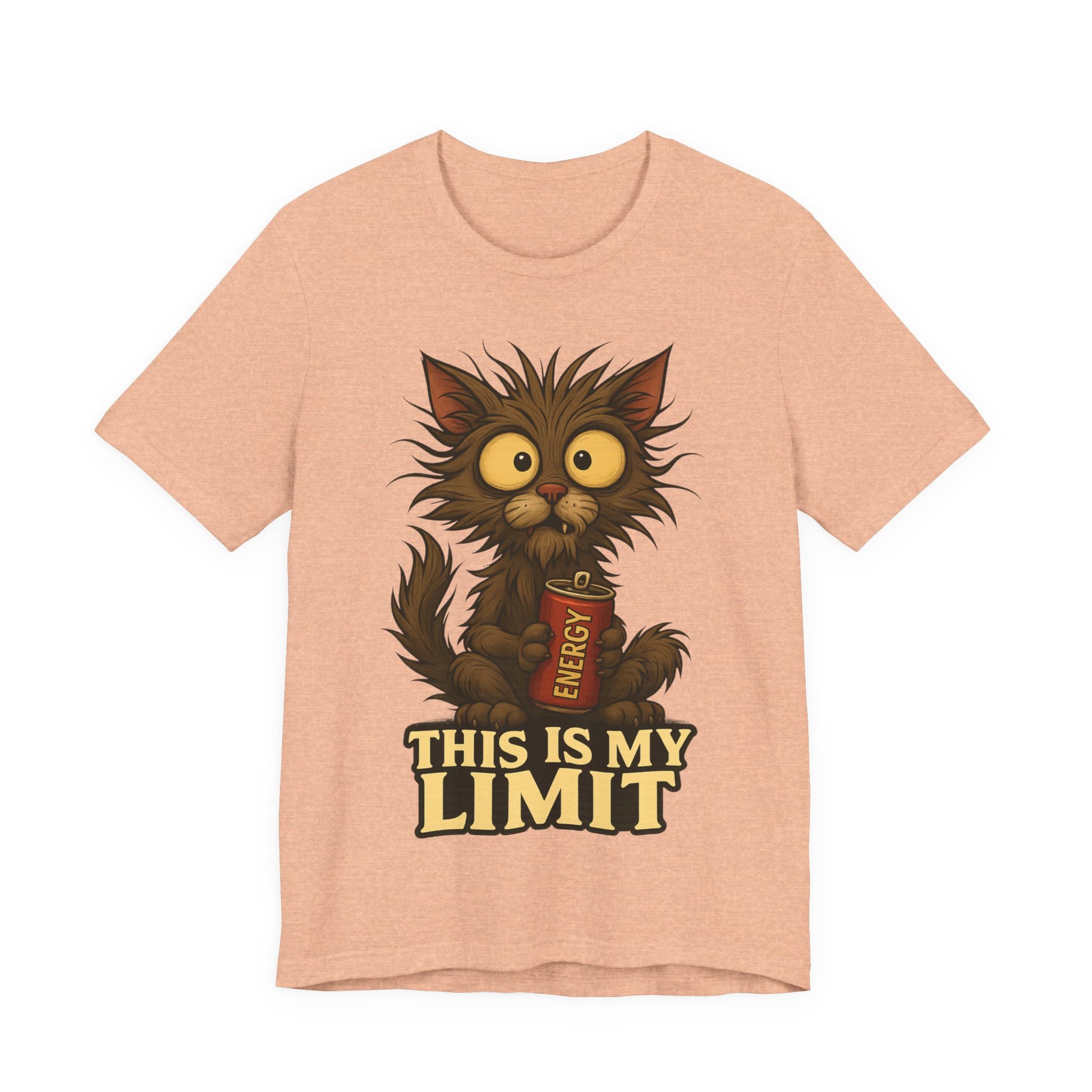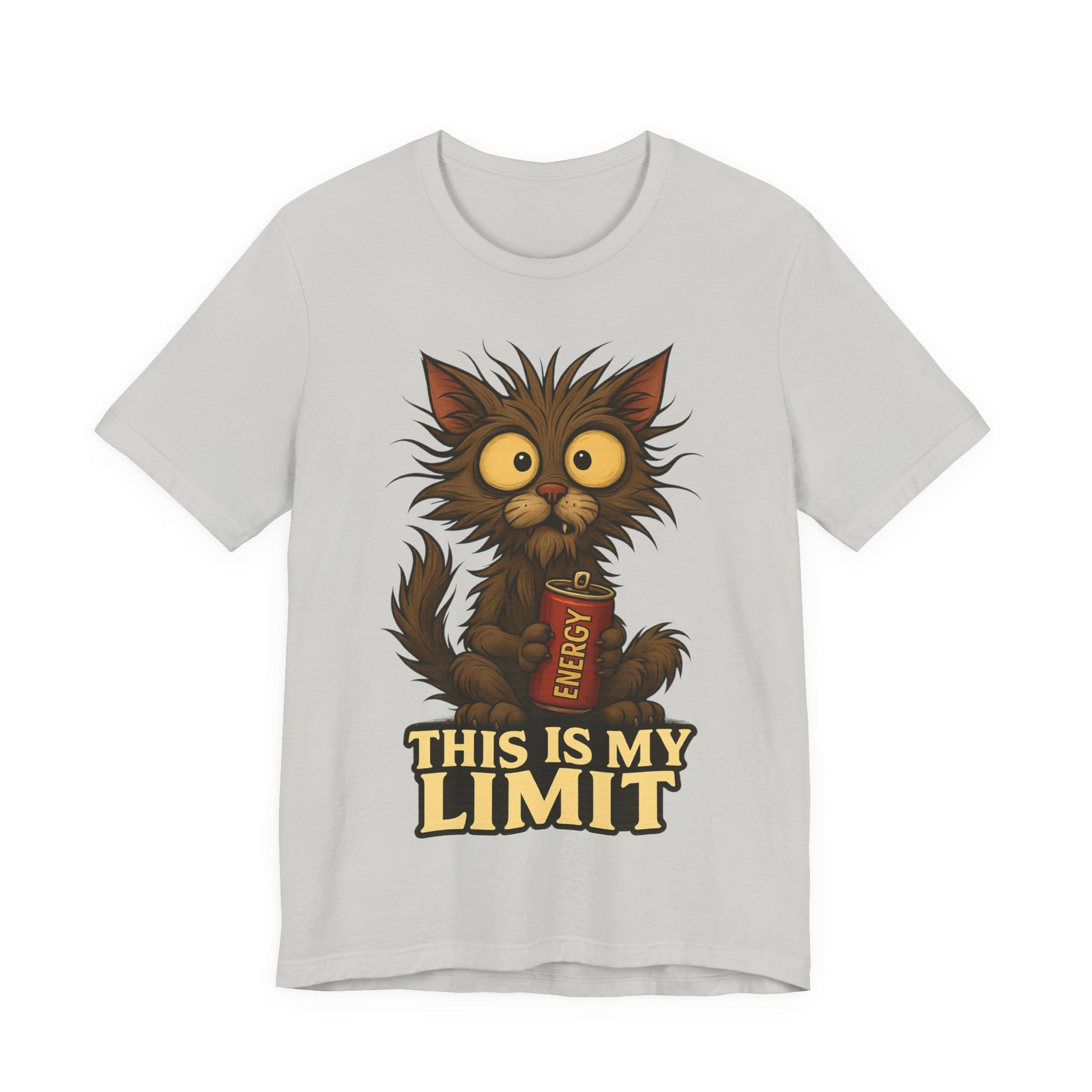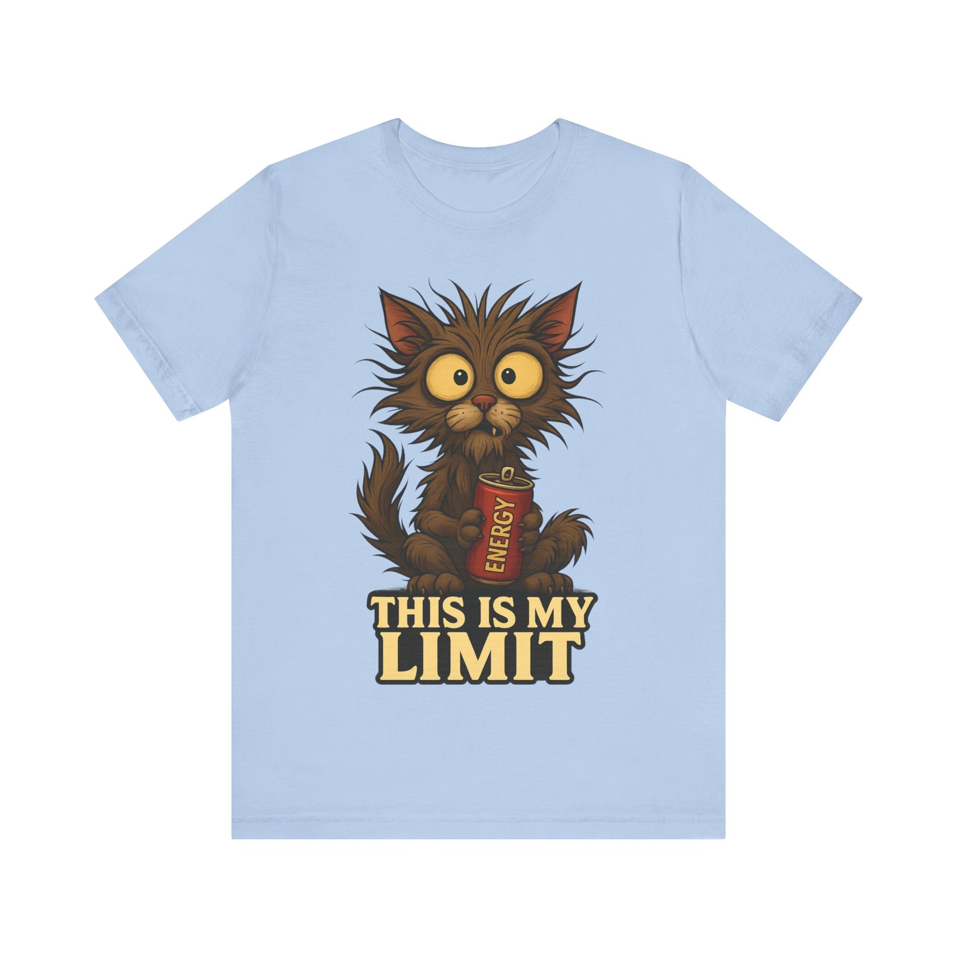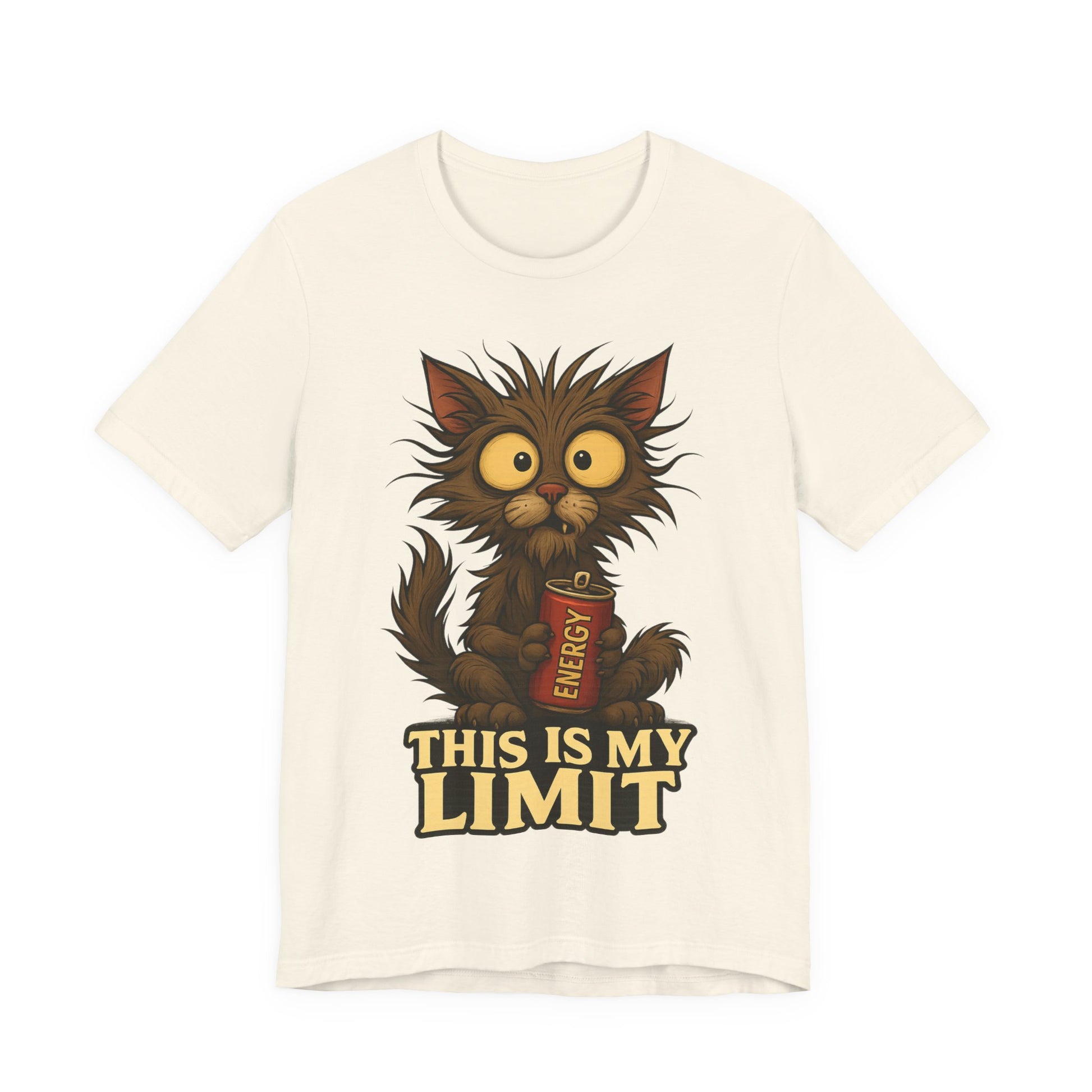 This Is My Limit Cat Tee - Cute Wide-Eyed Cat Holding Energy Drink Graphic T-Shirt