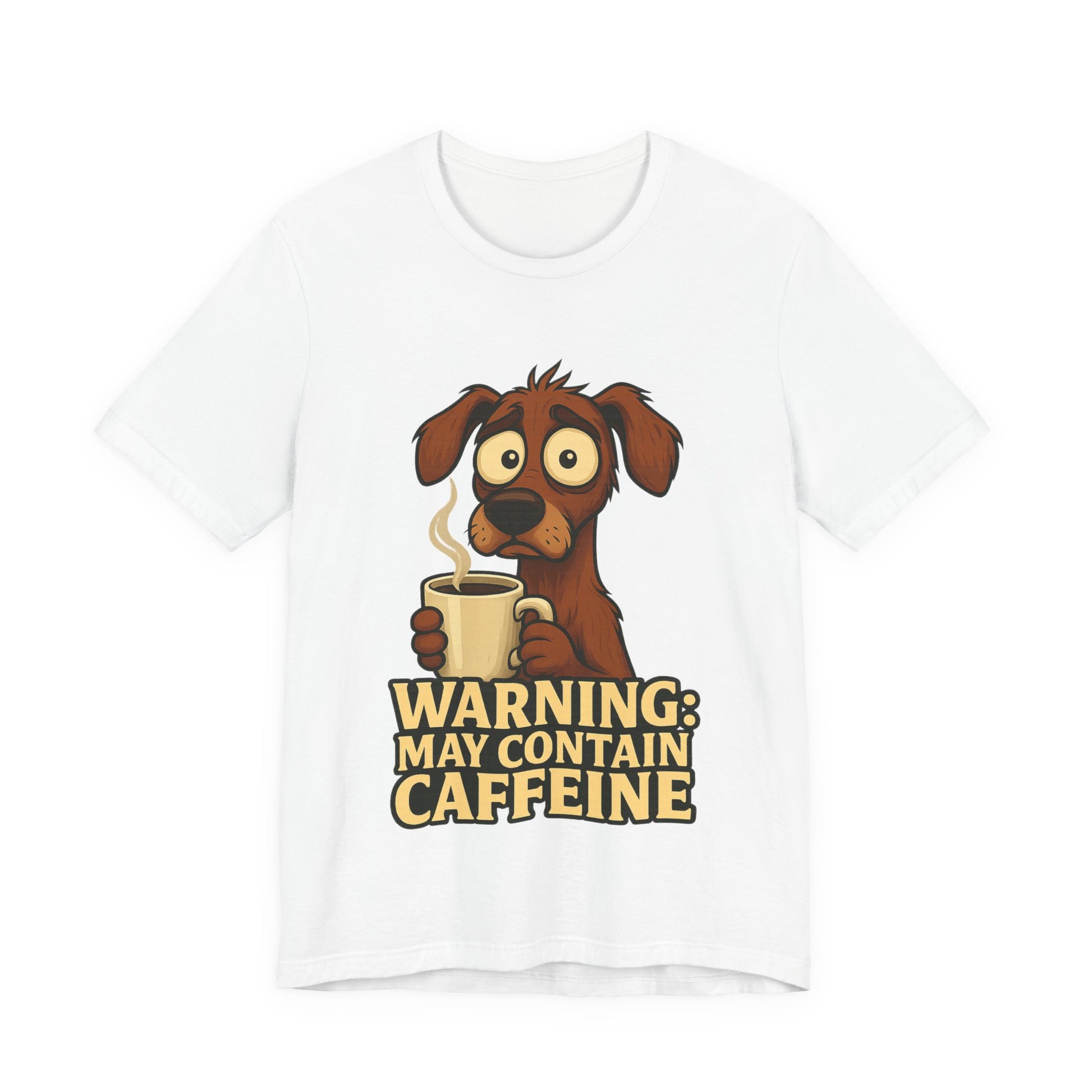 Warning: May Contain Caffeine Dog Tee — Cute Coffee Lover T-Shirt
